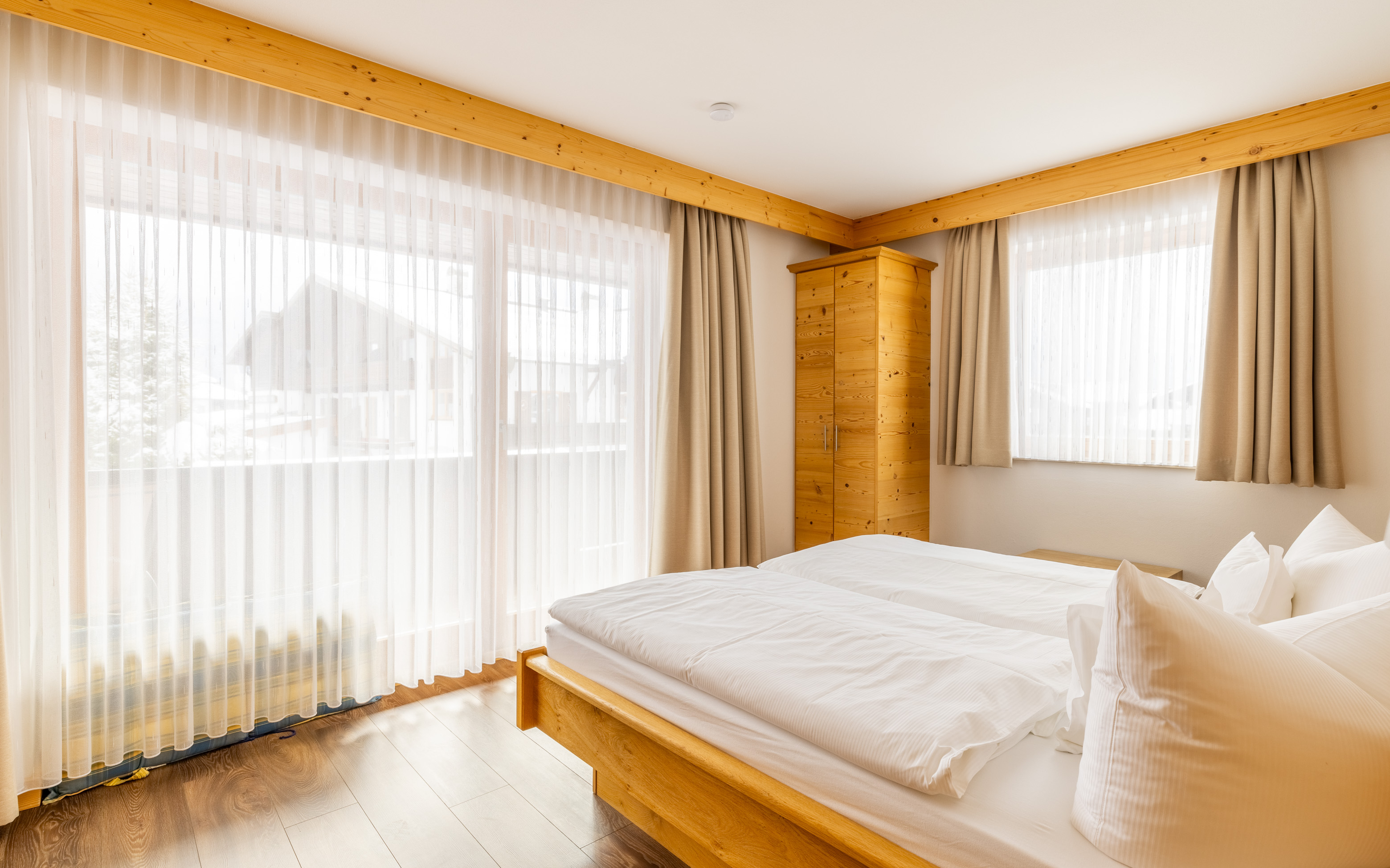 Wir verfügen über sonnige, große, mit viel Liebe zum Detail und Komfort komplett neu renovierte Ferienwohnungen mit Bergblick, die Sie einladen, sich zu entspannen und ein paar erholsame Tage in dieser herrlichen Gegend zu verbringen. Unsere Zweiraumwohnungen verfügen über Schlafzimmer mit Dusche/WC, die Dreiraumwohnungen über zwei separate Schlafzimmer mit Dusche/WC, nahezu alle zusätzlich mit Flat-TV im den Schlafzimmern. Alle neu renovierten Wohnungen haben moderne Einbauküchen mit Geschirrspüler, Backofen und 4-Platten-Cerankochfeld, gemütliche und sonnige Wohn-/Esszimmer, Flat-TV, große Balkone und vieles mehr.