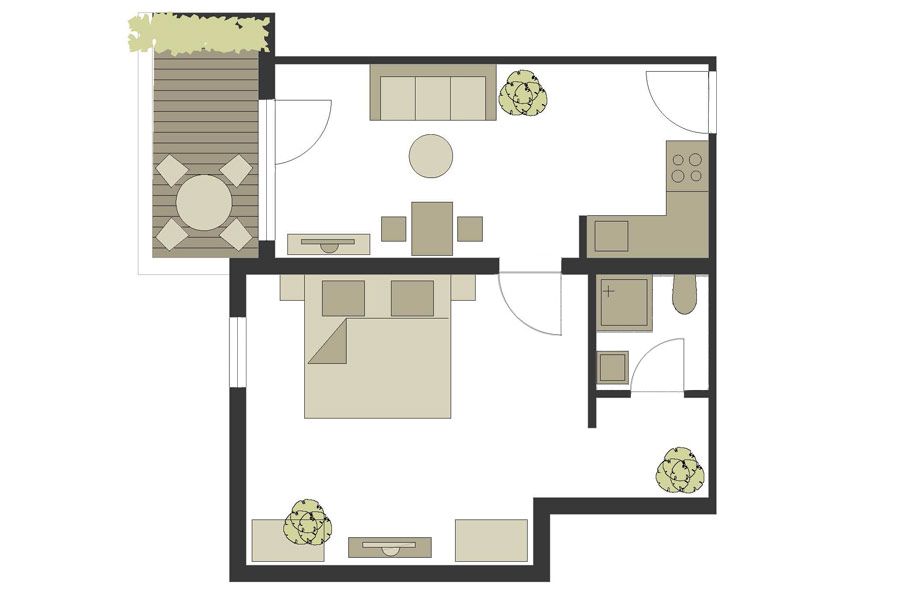 Die neu renovierte, großzügige 2-Raumwohnung im 2. OG hat eine Größe von ca. 41 qm. Die exklusive Wohnung verfügt über ein Schlafzimmer mit DU/WC (Fußbodenheizung), eine hochwertige moderne Küchenzeile (mit Geschirrspüler, Backofen, 4-Platten-Ceranfeld, Kaffeemaschine, Toaster, uvm.) und ein schönes helles Wohn/Esszimmer mit Panoramafenster, gemütliche Essecke und eine hochwertige Ausziehcouch. Vom West-Balkon hat man einen traumhaften Blick auf das Kaisergebirge und den Unterberg.