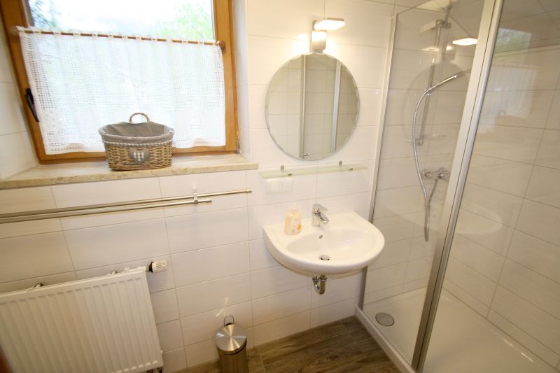 In unserer ländlich eingerichteten Ferienwohnung wohnen Sie auf zwei Etagen. Im Erdgeschoß befinden sich zwei Schlafzimmer - eines mit einem Doppelbett, eines mit zwei Einzelbetten. Von hier betreten Sie unsere Glasüberdachte Terrasse und Liegewiese an einem idyllischen Bachlauf mit Bergpanorama - ein geradezu idealer Platz zum Grillen.