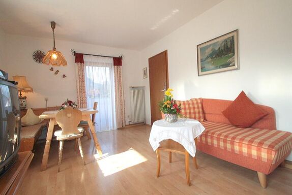 Genießen Sie Sonne pur von morgens bis abends im Wohnzimmer mit herrlicher Südwestlage. Es erwartet Sie die Kulisse der Berchtesgadener Alpen vom Untersberg und Predigtstuhl bis nördlich zum Hochstaufen. Balkon: West-Lage! Genießen Sie im Liegestuhl den Sonnenuntergang bei einem gemütlichen Glas Haustrunk. Die Küche ist klein, aber ausreichend und mit Allem ausgestattet, was Sie zum täglichen Bedarf benötigen. Zusätzliches wird nach Möglichkeit gerne erfüllt. Im Schlafzimmer weckt Sie die Morgensonne im Doppelbett. Handtücher werden gestellt. Die Ausstattung: Wohnzimmer - Fernseher, Sat, Radio, Küche: Kaffeemaschine, Wasserkocher, Toaster, Herd. Im Wohnzimmer befindet sich ein Schrankbett für die 3. Person. Schlafzimmer: Betten sind bezogen, Zusatzausstattung: Kinderreisebett, Bad: Hand- und Duschtücher werden gestellt. Kostenfreies W-Lan. Schöne, ruhige und helle Ferienwohnung mit Balkon, in ländlichem Stil eingerichtet.