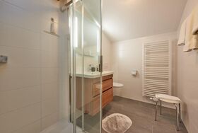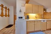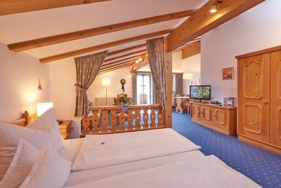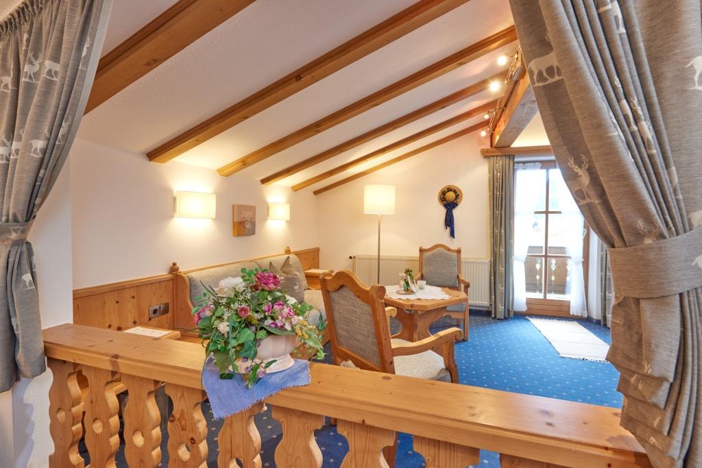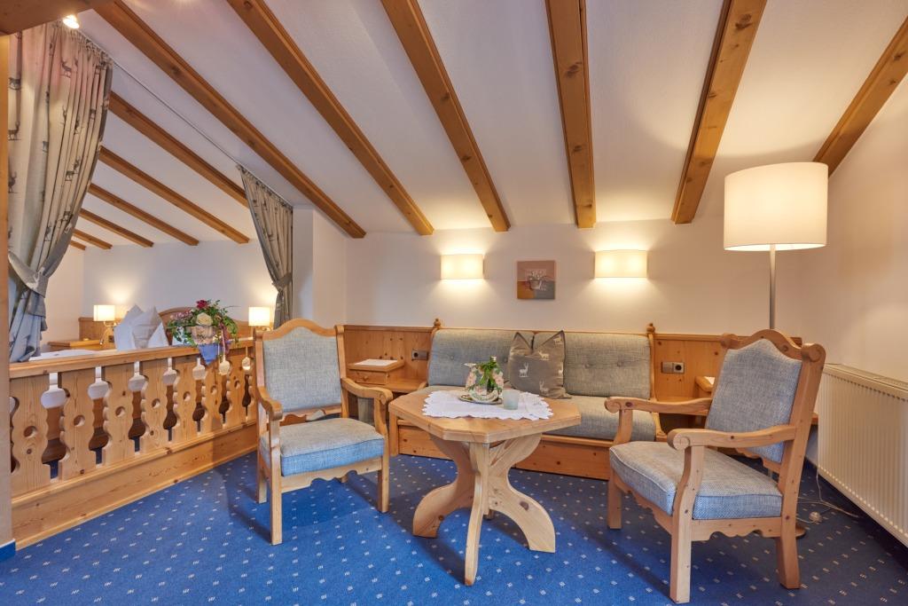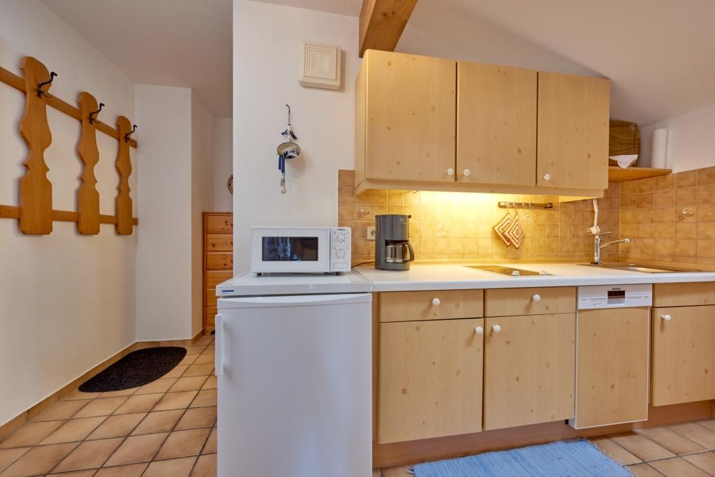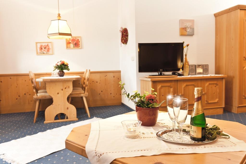 Komfortabel und gemütlich eingerichtetes, großes Appartement mit Westbalkon und freien Blick auf die Berge, Dusche/WC, Radio, TV, Telefon, Küche mit Mikrowelle.