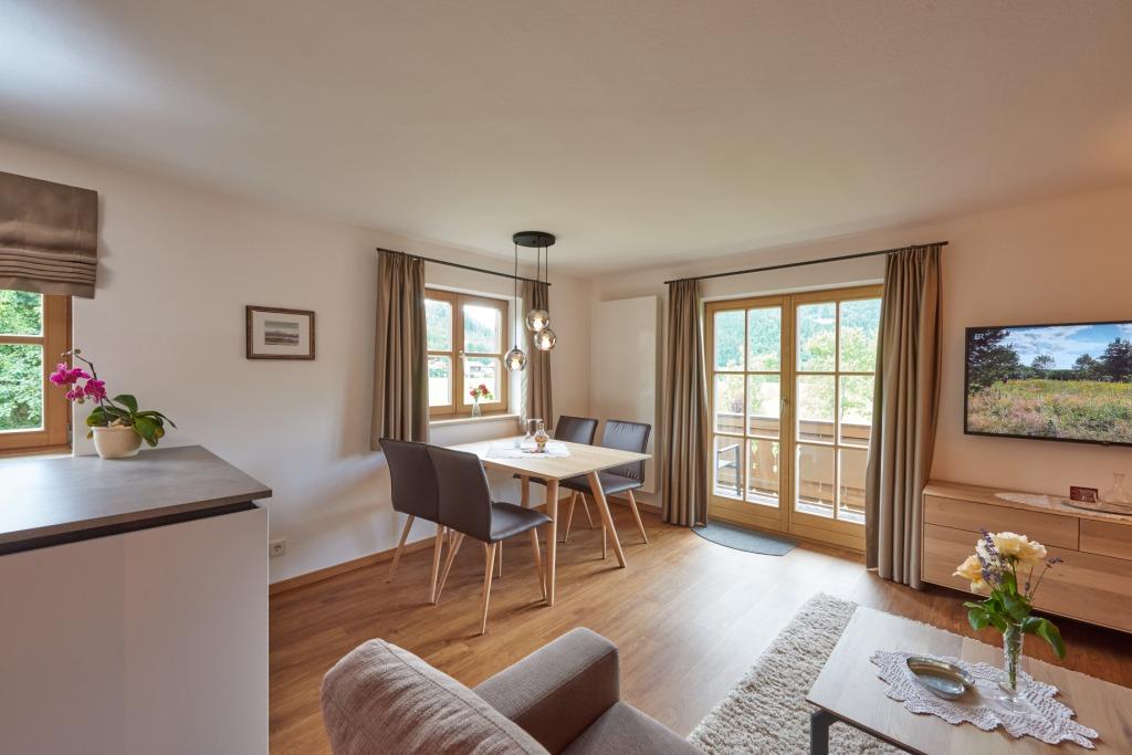 Die gemütliche Atmosphäre und die individuelle und aufmerksame Gästebetreuung unseres Hauses lassen Sie den Alltagsstress schnell vergessen. Unsere großzügig ausgestatteten Ferienwohnungen verfügen alle über Dusche/WC, eine Küche, TV, Telefon und Balkon. Auf der Liegewiese direkt am Haus kommen Sonnenhungrige voll auf Ihre Kosten. Idealer Ausgangspunkt ist unser Haus für Wanderungen, Langlaufen und Skifahren. Ihr Vorteil als unser Gast: Wir sind Partner-Vermieter/Betrieb der Reit im Winkl Schwimm-Card und der Benzeck-Skilifte. Sie haben dadurch die Möglichkeit, zusätzlich zu unseren eigenen Leistungen, weitere kostenlose Leistungen zu erhalten, wie z.B. freien Eintritt im Freibad Reit im Winkl, im Kössener Waldschwimmbad sowie an den Strandbädern am Walchsee. Im Winter haben Sie freie Fahrt an den Benzeck-Liften (€ 1,00 Kostenbeitrag). Skikeller vorhanden; zum Skibus 20 m.