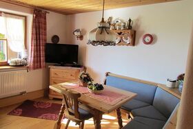 Das Ferienhaus Wolfenstetter befindet sich in ruhiger Lage in Reit im Winkl im Ortsteil Entfelden. Das idyllische Haus steht inmitten von Wiesen und bietet einen herrlichen Bergblick. Wir bieten eine Komfortwohnung in der bis zu vier Personen Platz finden. Erreichbar ist die Wohnung über einen eigenen Eingang. Sie enthält eine komplett eingerichtete Küche mit 4-Plattenherd und Backofen. Zwei Schlafzimmer (im Ober- und Untergeschoß) mit jeweils einem Bad mit Dusche und WC garantieren jeglichen Komfort. Das Wohnzimmer ist mit Sat-TV und Mini-Stereoanlage ausgestattet. Zur Wohnung gehört auch eine eigene Terrasse. Im Sommer erwartet Sie eine Liegewiese mit Gartenhaus und Spielplatz. Wir freuen uns auf Ihren Besuch! Ihre Familie Wolfenstetter