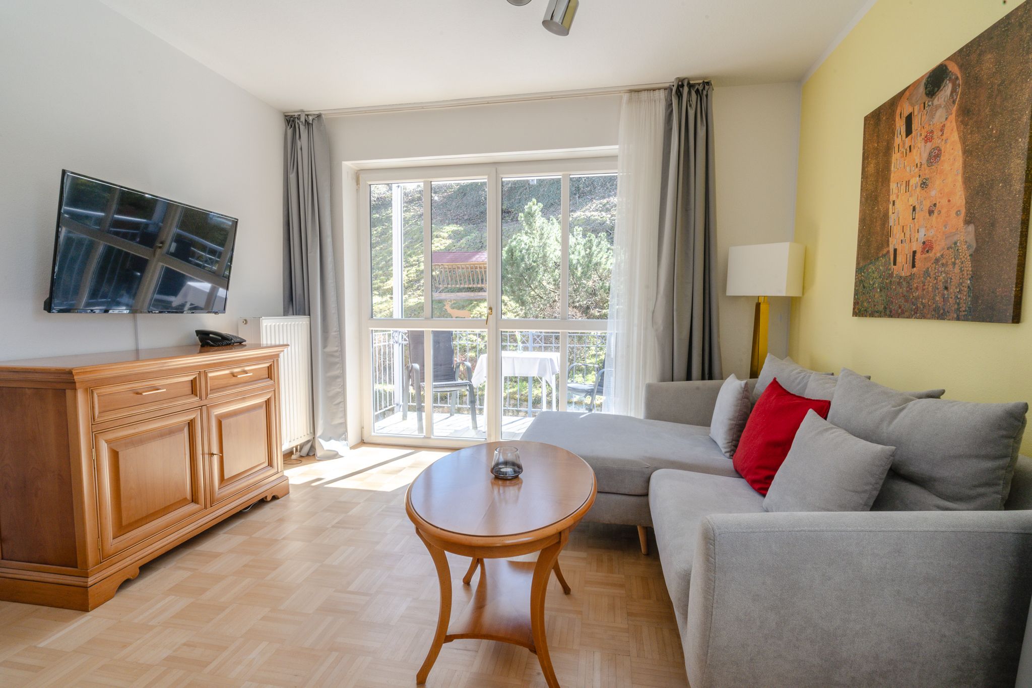 Unser schönes, gemütliches Appartement ist im klassisch- eleganten Stil eingerichtet. Die Wohnung befindet sich im 2. OG und verfügt über ein separates Schlafzimmer mit einem Doppelbett (Boxspringmatratzen - 1,80 x 2,00), ein Wohnzimmer mit Sofa und Essecke, eine gut ausgestattete Küche mit Geschirrspüler, sowie ein Bad mit Dusche/WC. Zur Wohnung gehören 2 Balkone, auf welchen Sie unter anderem auch auf unsere Alpenstadt mit Bergpanorama blicken können.