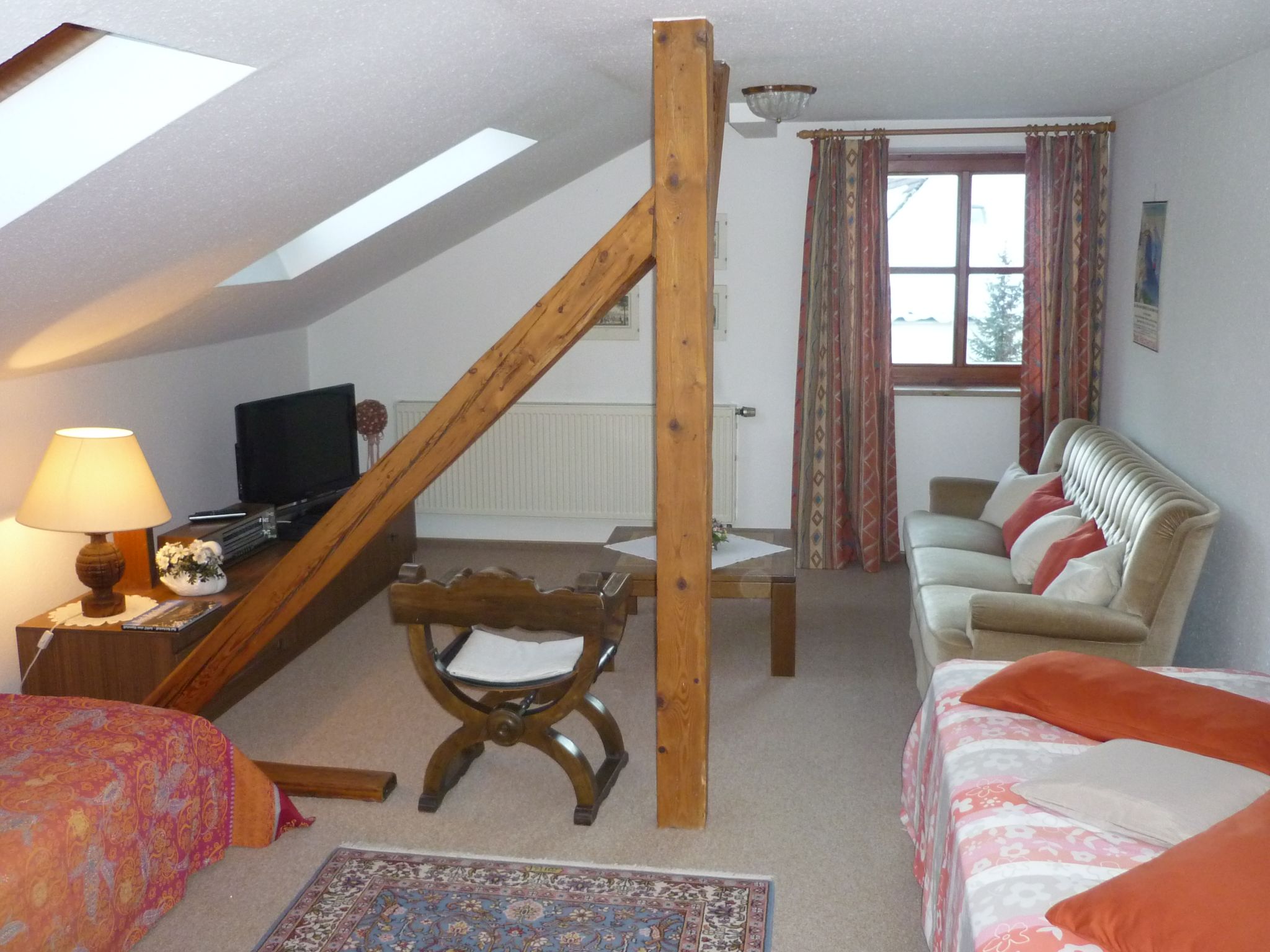 Gemütlich eingerichtete, helle 70 qm große Wohnung mit viel Komfort, im DG eines bayerischen Hauses. Geräumiges Schlafzimmer, großes Wohnzimmer mit zusätzlichem Bett, Sitzecke, Fernseher, Radio und Telefon. Großzügige Vollküche mit Essplatz und großem Bad mit Dusche und WC. WLAN vorhanden. Ein schöner Garten und ein Balkon stehen zur Benutzung zur Verfügung. Der Gesundheit unserer Gäste zuliebe ist es eine Nichtraucher-Wohnung. Die Wohnung ist ruhig und dabei sehr zentral gelegen.