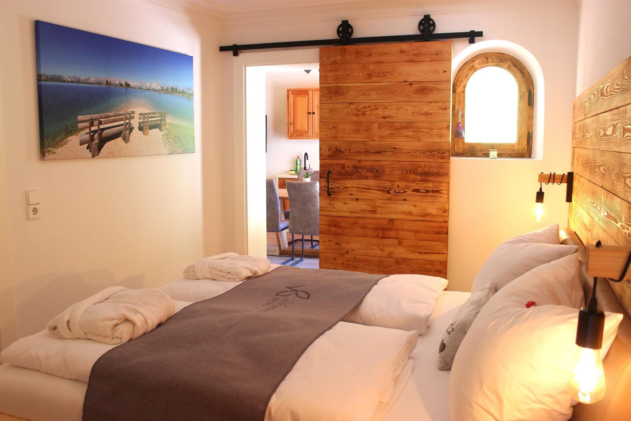 Derzeit stehen unseren Gästen eine voll ausgestattete Ferienwohnung (für 2, maximal 4 Personen) mit Infrarotkabine, Dampfdusche, separatem Schlafraum und Sonnenterrasse sowie ein Doppelzimmer (für 2 Personen) mit Sonnenterrasse zur Verfügung. Beide Einheiten sind mit natürlichen Materialien (Echtholz, teilweise Altholz) verfeinert.