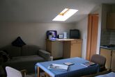 Eine moderne, gemütliche Wohnung in der II. Etage mit Kochstelle, Kühlschrank/Gefrierfach, Toaster und Kaffeemaschine, Dusche, Radio, Kabel-TV und Direktwahltelefon mit Zähler.
