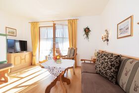 Separates Schlafzimmer, gemütlicher Wohnraum mit eingebauter Essecke mit Kachelofen und Sitzgruppe. Die abgeschlossene Küche ist mit Spülmaschine und Mikrowelle ausgestattet. Helles Badezimmer mit Fenster Dusche/WC und Waschbecken. Der abgeschlossene Balkon zur Südseite mit Blick zum Wilden Kaiser.