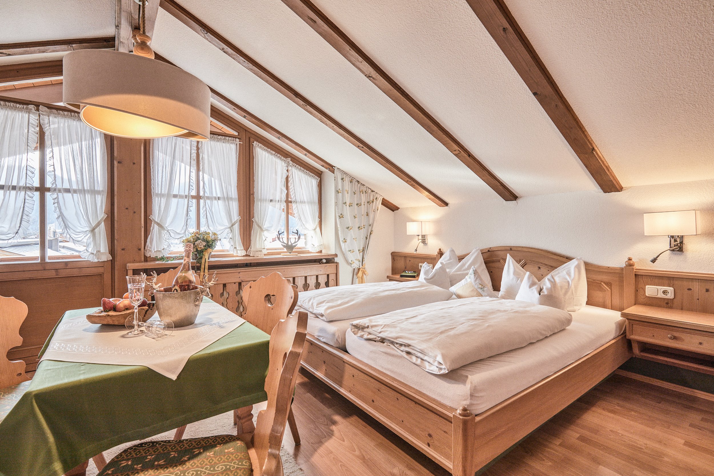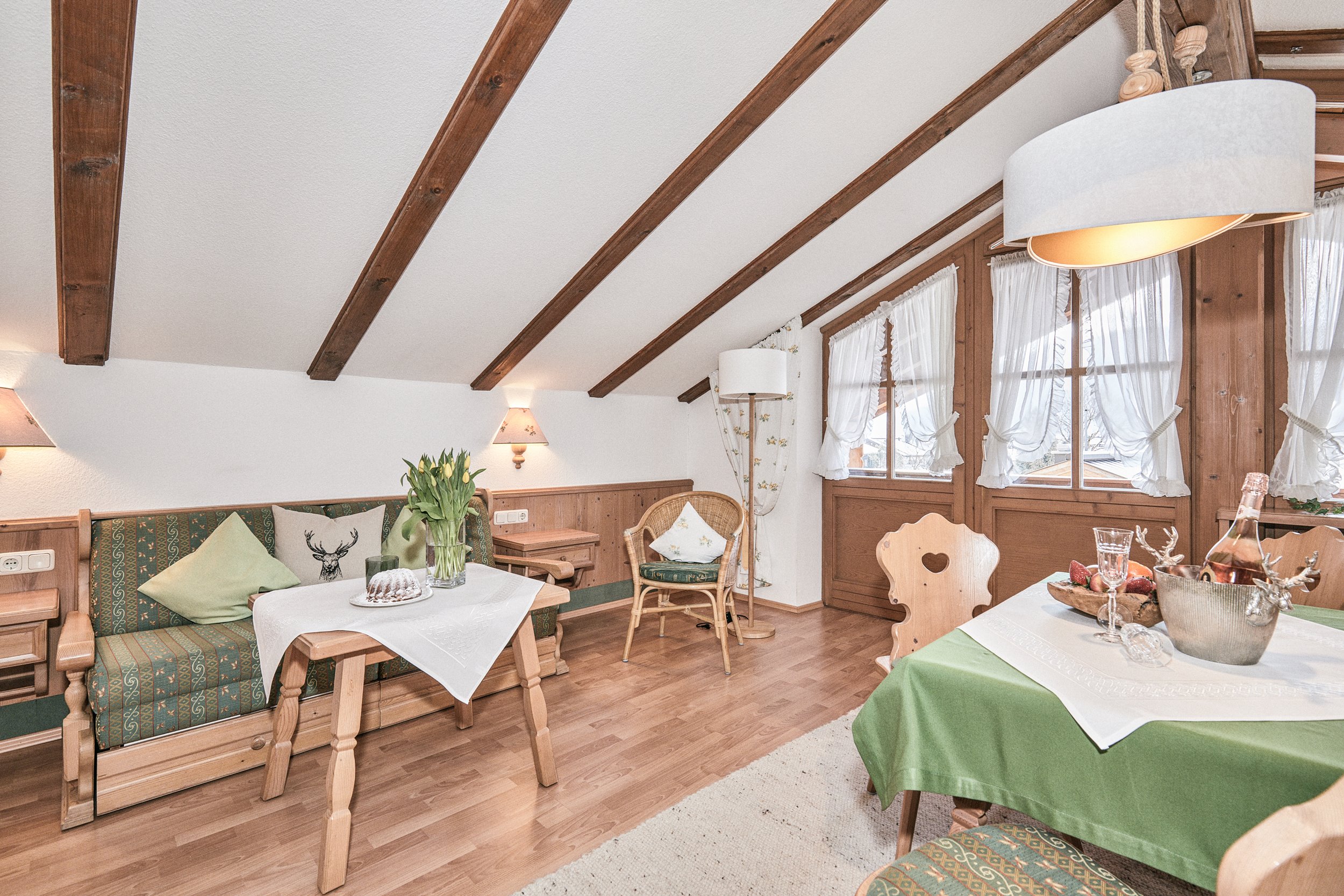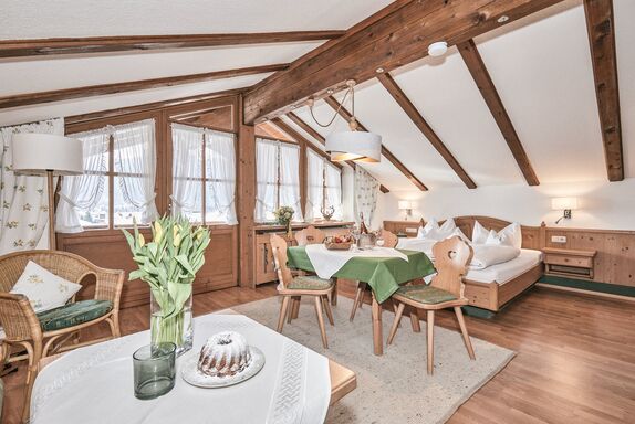 Das Gästehaus Theresa in Reit im Winkl bietet mit seiner modernen und doch landestypischen Architektur eine herrliche Atmosphäre zum Wohlfühlen. Komplettiert durch eine komfortable Ausstattung und die zentrale Lage zu sämtlichen Sport- und Freizeitaktivitäten wird Ihr Urlaub zu einem traumhaften Erlebnis. Das Landhaus Theresa, stilvoll eingerichtet mit handgefertigtem hellen Holz, bietet Ihnen ein unverwechselbares Urlaubserlebnis. Erholen Sie sich in einem unserer neun Appartements, die alle über einen Balkon sowie eine umfangreiche Austattung verfügen. Unser Wellnessbereich verkörpert eine Oase der Stille, in der Sie wieder richtig Kraft tanken können. Erleben Sie Entspannung und Erholung pur! An den von uns kostenlos zur Verfügung gestellten Fitnessgeräten dürfen Sie sich gerne auch körperlich fit halten. Genießen Sie die Finnische Lebenskultur in unserer Sauna, die gut für Ihren Körper und Ihre Sinne ist. Gerade in der Winterzeit bietet sich der Saunagang an, um Abwehrkräfte zu stärken. Erfrischen Sie sich im Anschluss mit einer kühlen Dusche und entspannen Sie sich im Ruheraum nebenan. Reit im Winkl bietet Ihnen zahlreiche Sport- und Freizeitmöglichkeiten: Wanderwege, Nordic Walking, Rad- und Mountainbikestrecken, 18-Loch-Golfanlage, Loipen und zahlreiche Bademöglichkeiten, um nur einige zu nennen. So findet sicher jeder das Richtige für sich.