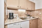Wohn-, Schlafraum getrennt (mit Parkettboden ausgestattet). Schöner Wohnraum mit Eßecke und Sitzgruppe. Abgeschlossene komplett ausgestattete Küche, große, ebenerdige Dusche. Großer Balkon zur Südseite mit Blick zum Wilden Kaiser.
