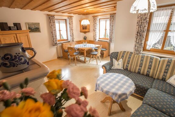 Genießen Sie die frische Bergluft auf dem Balkon oder der Terrasse, wo Sie den Blick auf die umliegende Landschaft schweifen lassen können. Für die aktiven Gäste bieten sich zahlreiche Wander- und Radwege direkt vor der Haustür an. Im Winter können Sie die nahegelegenen Skigebiete erkunden und sich nach einem aufregenden Tag in der Natur entspannen.Ob mit oder ohne Anstrengung am Tag, ein heißer Jagatee oder Glühwein am Kachelofen in der gemütlichen Stube ist eine wohlverdiente Krönung nach einem kalten Wintertag.