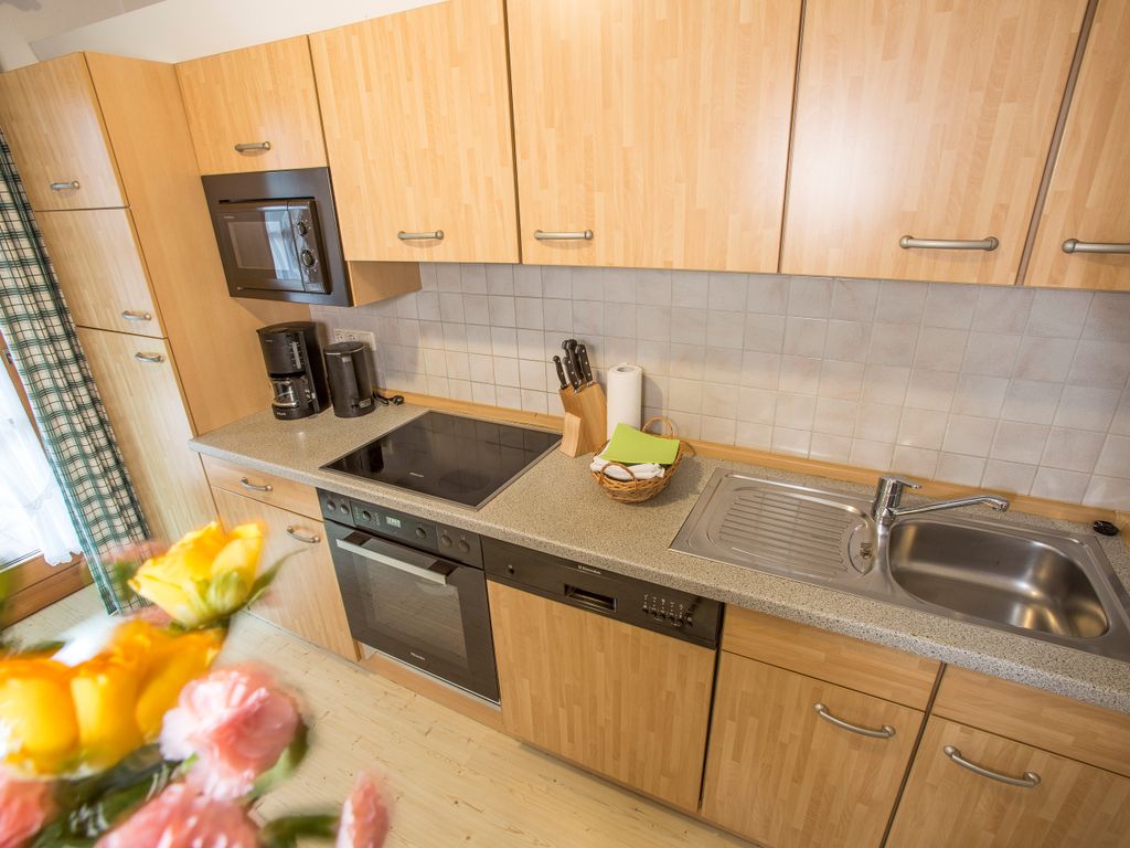 Mit viel Liebe zum Detail eingerichtete Ferienwohnung (75 qm), Terrasse, Wohnzimmer mit Kachelofen (Holz steht zur Verfügung), Eßecke, Couch. Separate Küche komplett ausgestattet mit Spülmaschine, Mikrowelle, Kaffeemaschine, Wasserkocher, 4-Plattenherd mit Backrohr, Kühlschrank mit Gefrierfach, Bad mit Badewanne und Dusche, WC separat. Kabel-TV, Telefon, Radio, Stereoanlage und Internet - WLAN kostenfrei nutzbar.