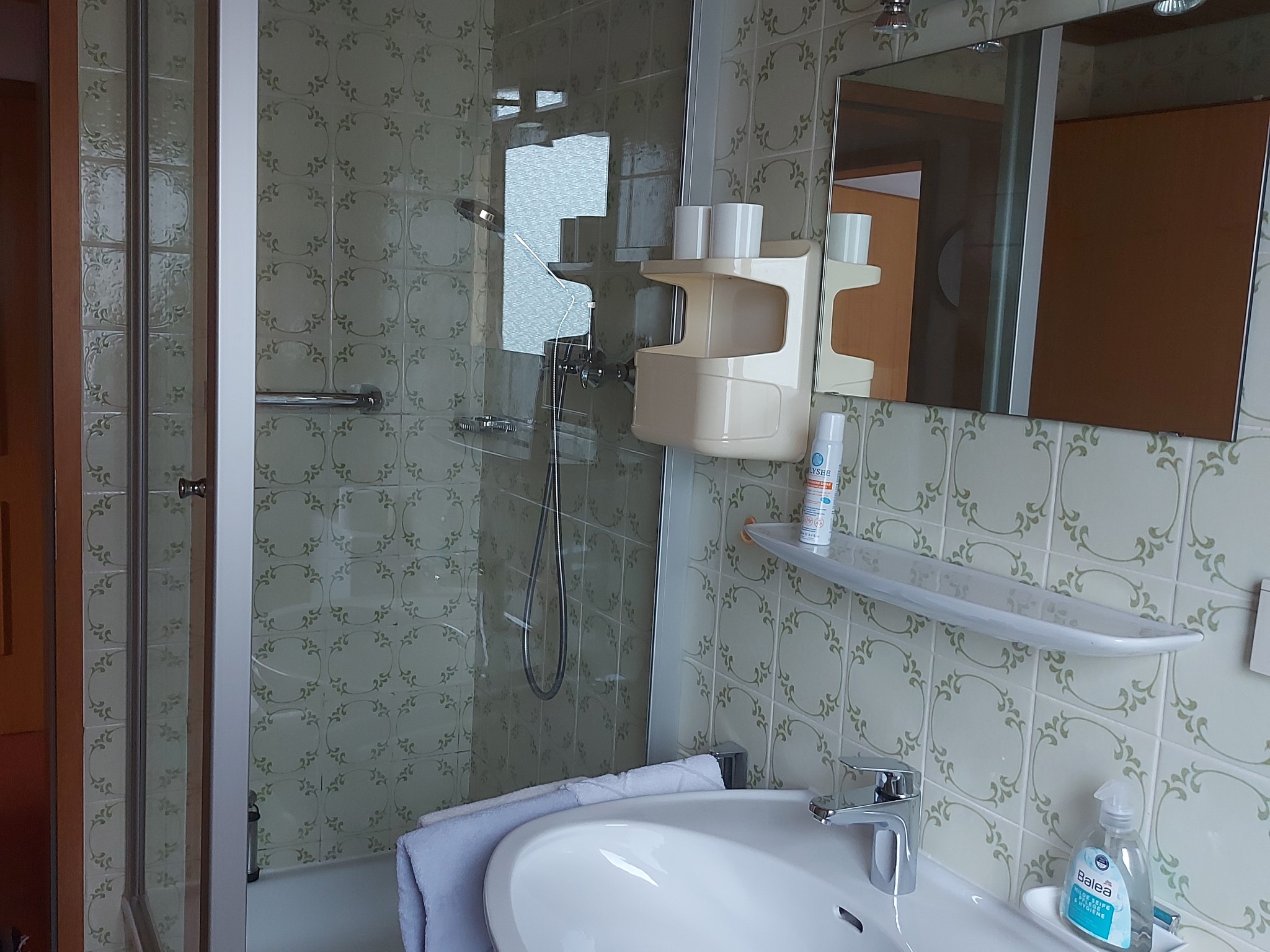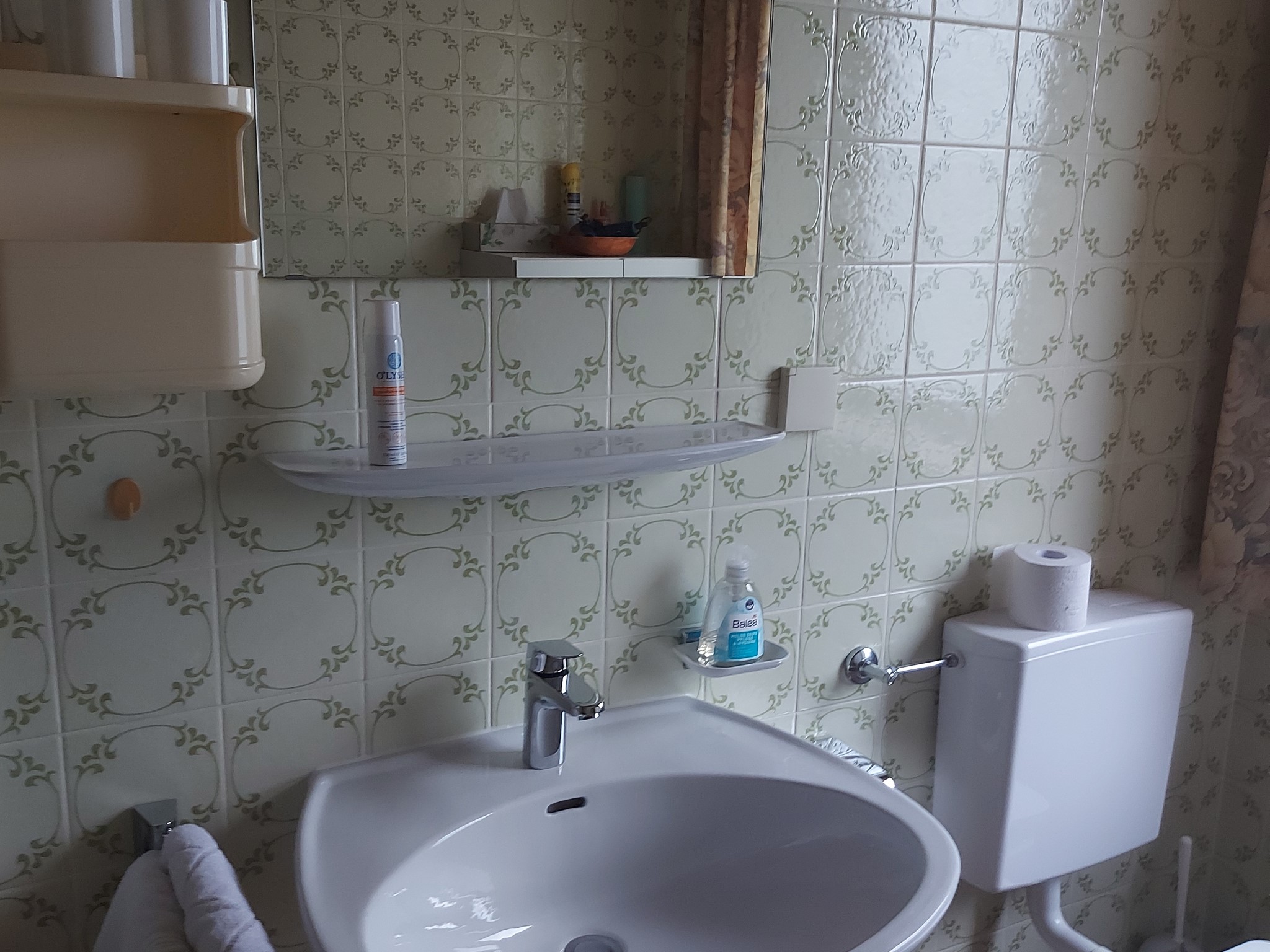 Ruhig- sonnig- Bergblick, großes Bad mit Fenster, Badezimmermöbel, Schrank in der Diele, Garderobe, helle Möbel, kostenloser Fahrradverleih
