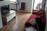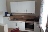 Die Ferienwohnung mit Südbalkon befindet sich im 2. Stock, in der Ferienwohnung befindet sich eine Küchenzeile ein Badezimmer ein Sofa mit Fernsehecke und ein Doppelbett.
