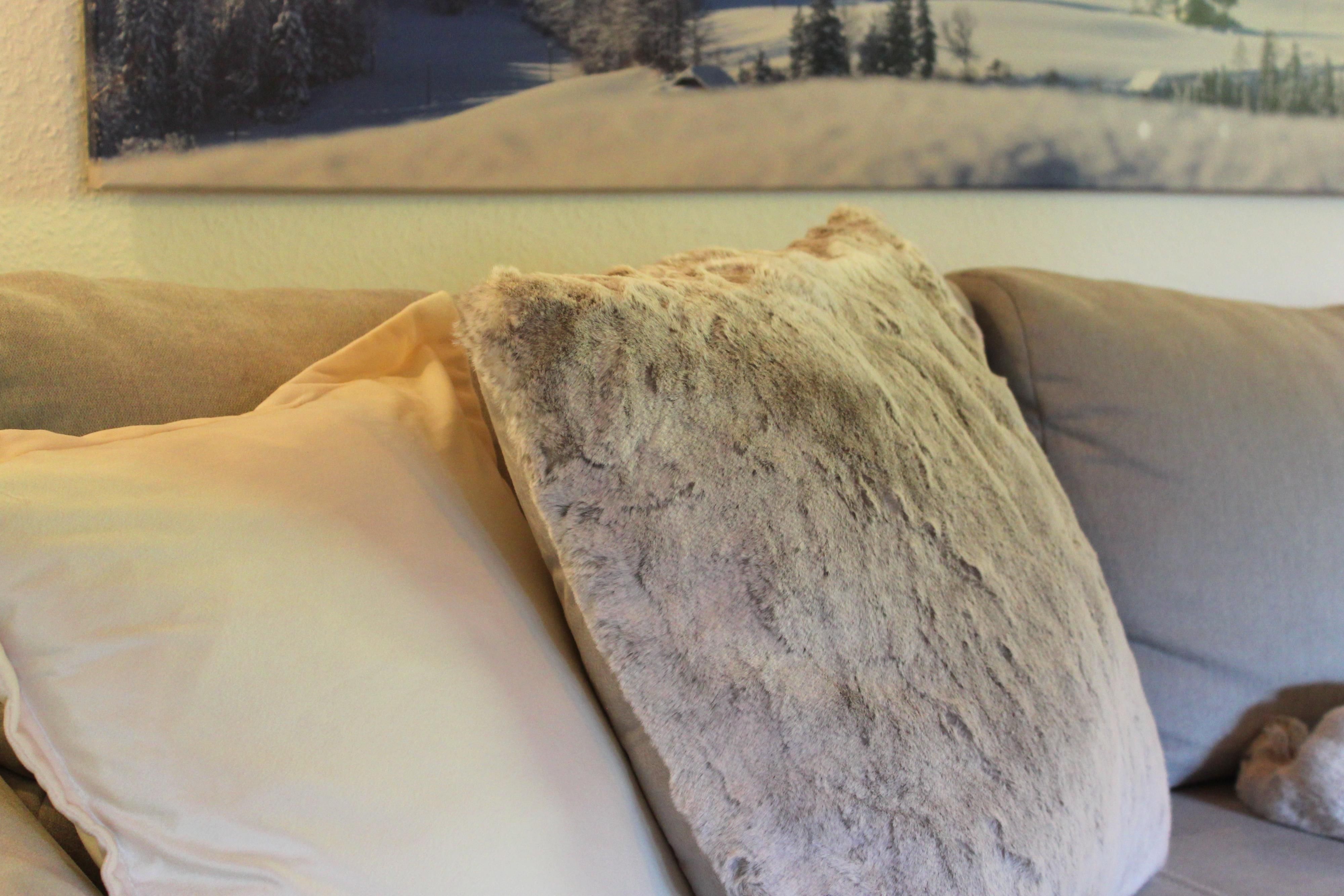 • Gemütliche Wohnecke mit Kuscheldecke und Flachbildfernseher