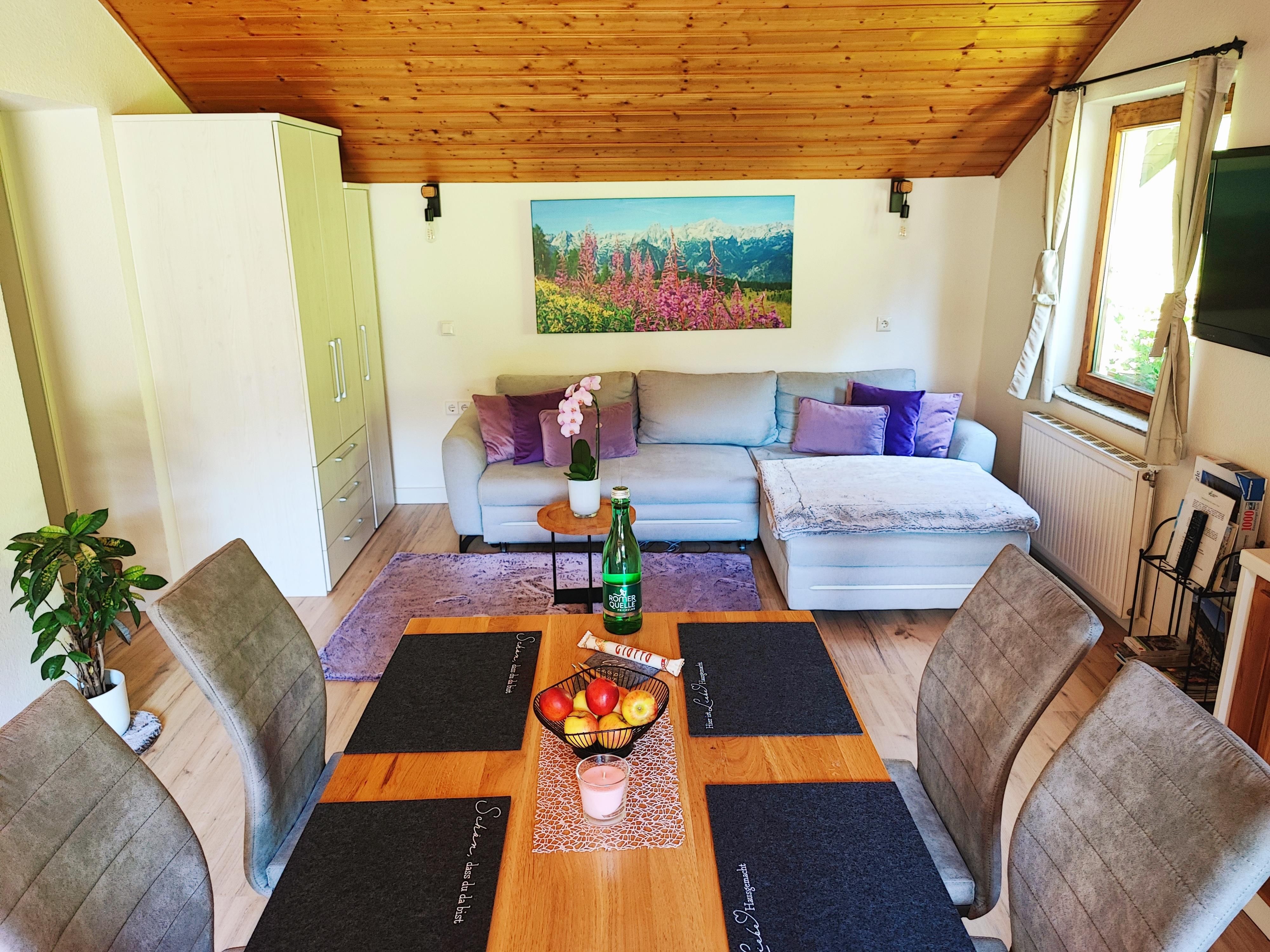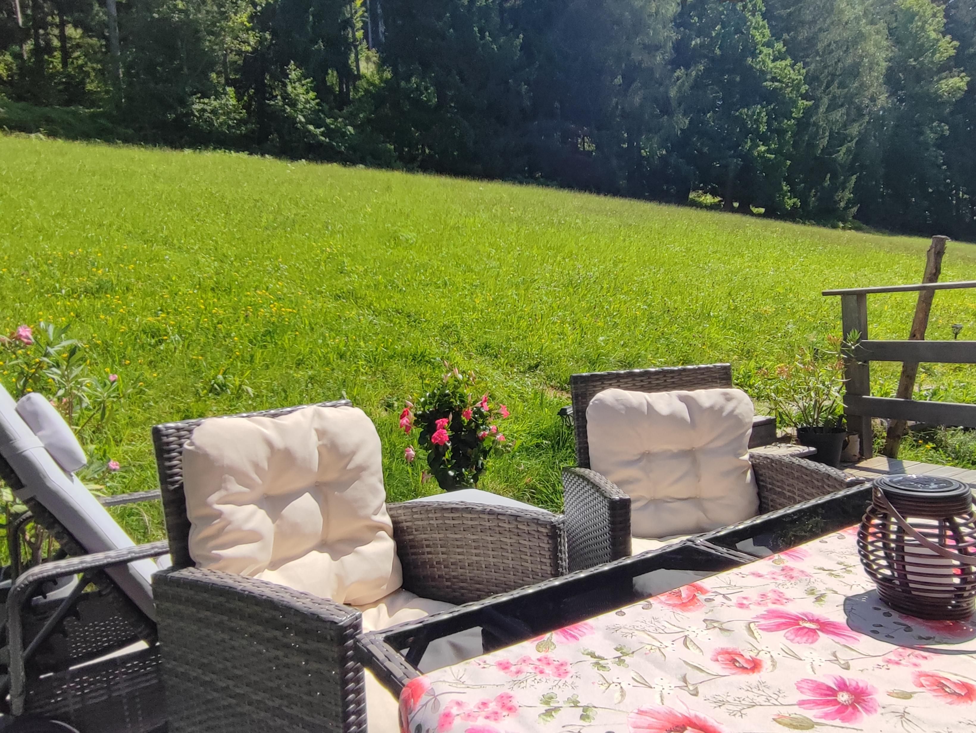 Ein einzigartiges Erlebnis für Körper und Seele bietet unsere Ferienwohnung mit traumhaftem Wald -und Wiesenblick. Die greifbar nahe Natur widerspiegelt sich in der Ausstattung: sowohl der Wohnbereich mit der Küchenzeile, als auch das kuschelige Schlafzimmer sind mit natürlichen Stoffen (Echtleder) und warm duftendem Holz (Lärche, Zirbe) ausgestattet. Die großzügige Terrasse lädt zum Verweilen und Aufatmen ein. Von Frühling bis Herbst wird auch eine moderne Grillstation zur Verfügung gestellt. Nimm Deinen kuscheligen Bademantel und entspanne Dich nach einem erlebnisreichen Tag in der wohltuenden Infrarotkabine und genieße die Wärme der Dampfdusche mit der integrierten Lichttherapie. Dein Wohlfühlangebot wird mit natürlichen Kosmetikprodukten komplettiert und frischem Obst komplettiert.