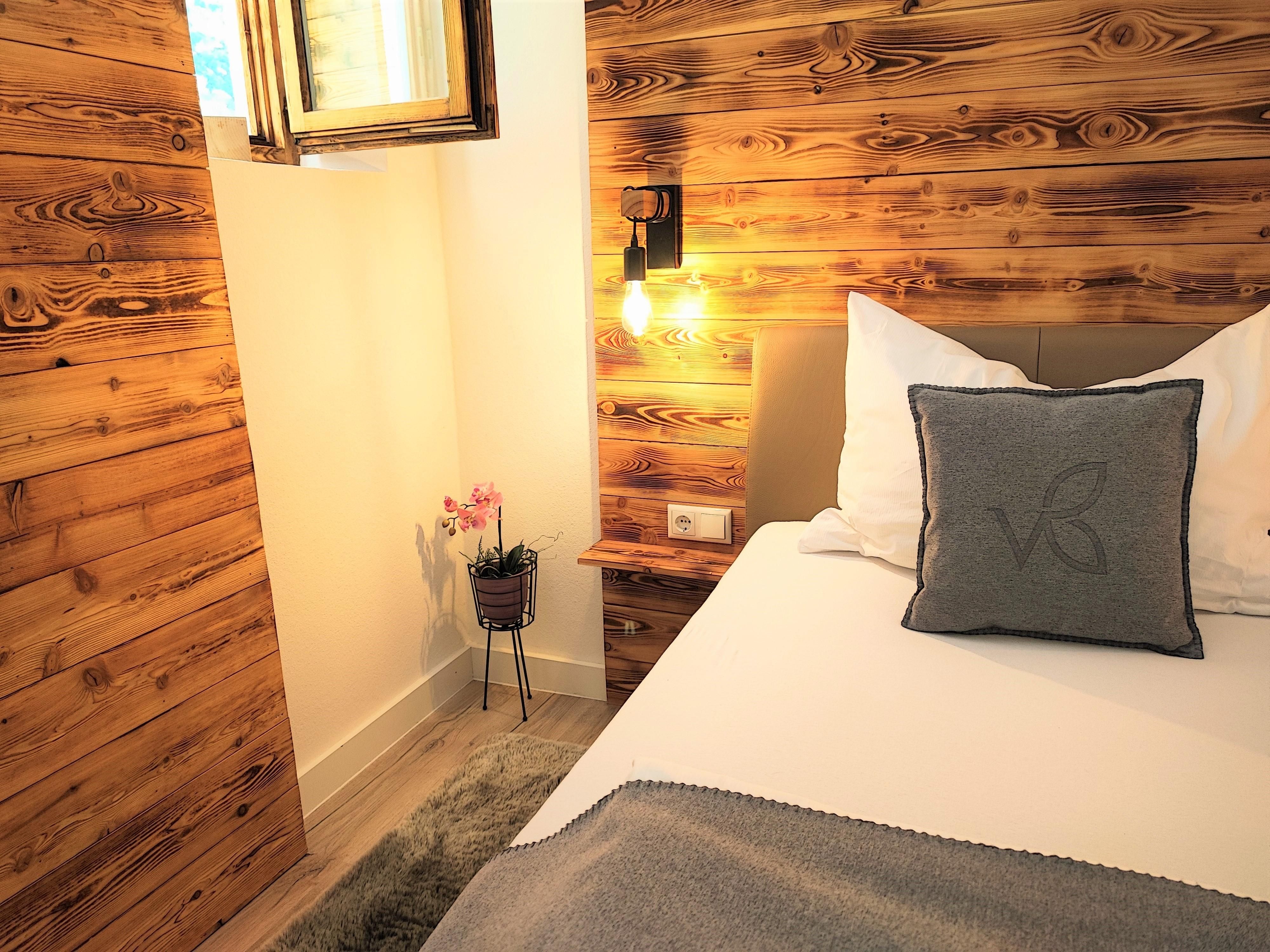 Derzeit stehen unseren Gästen eine voll ausgestattete Ferienwohnung (für 2, maximal 4 Personen) mit Infrarotkabine, Dampfdusche, separatem Schlafraum und Sonnenterrasse sowie ein Doppelzimmer (für 2 Personen) mit Sonnenterrasse zur Verfügung. Beide Einheiten sind mit natürlichen Materialien (Echtholz, teilweise Altholz) verfeinert.