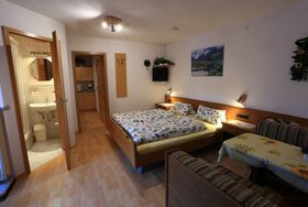 Diese Zwei-Raum-Wohnung mit 28 m² befindet sich im 2. Obergeschoß und bietet Platz für zwei Personen. In der separaten Küche lassen sich kleine Mahlzeiten zubereiten. Im Schlaf-/Wohnraum befindet sich ein Doppelbett sowie eine gemütliche Sitzgelegenheit. Bad mit Dusche/WC. Der eigene Balkon bietet einen herrlichen Blick auf das Dorf.
