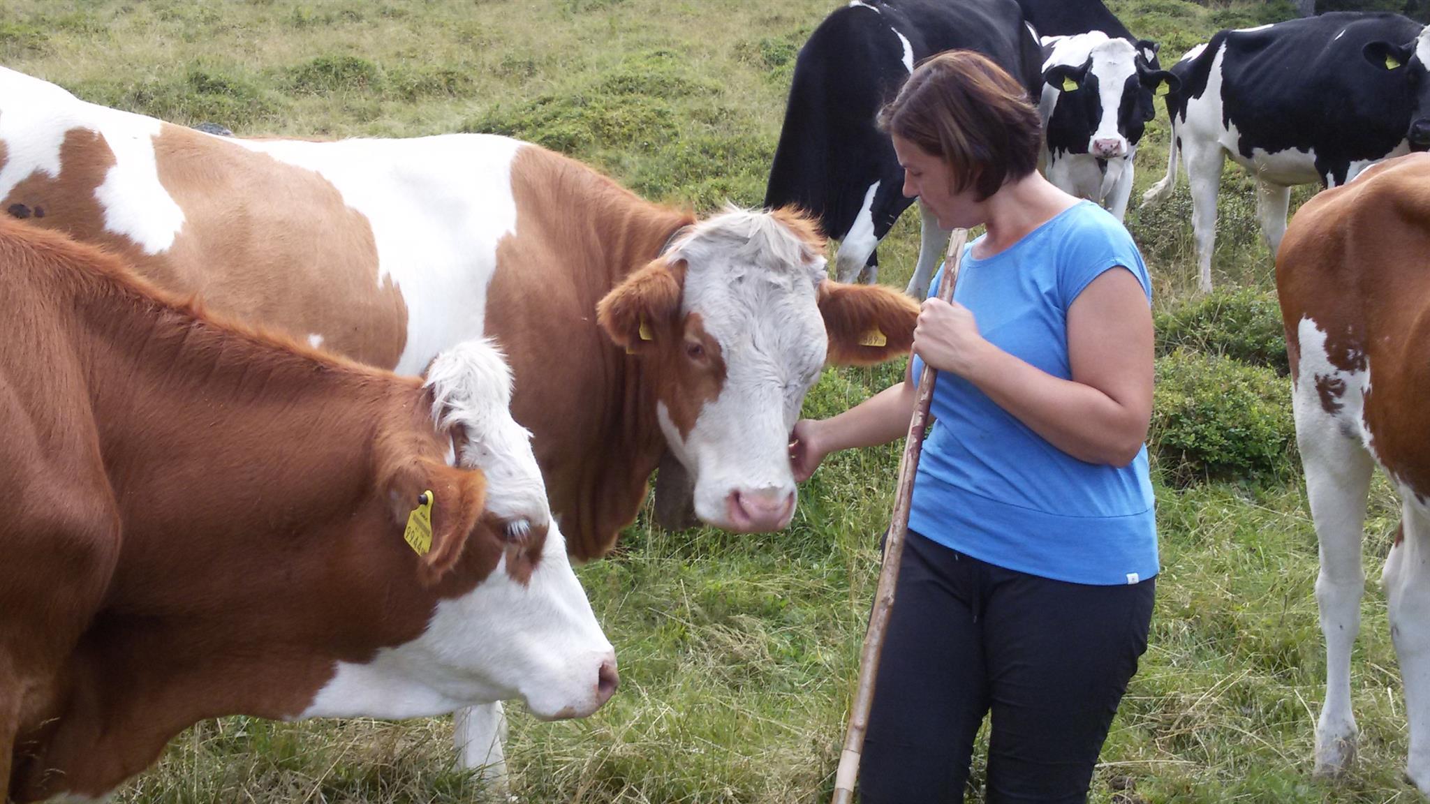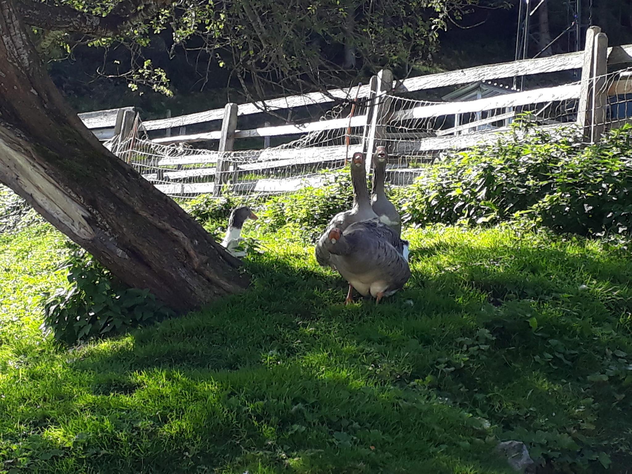Wir bewirtschaften unseren Bio-Betrieb als Milchviehbetrieb und halten außer Kühen samt deren Nachwuchs auch noch Schafe, Gänse, Enten und Katzen. Unsere Kühe verbringen die Hälfte des Jahres auf der Weide und sind dann nur während der Melkzeiten und in der Nacht im Stall. Das Jungvieh und die Schafe dürfen den Sommer auf der Alm verbringen. Fragen Sie nach, wir zeigen Ihnen gerne, wo unsere Tiere die Sommermonate verbringen. Da wir selbst drei Töchter haben, sind unsere Tiere an Kinder gewöhnt. Solange man sich an gewisse Regeln hält, dürfen unsere Gäste auch gerne bei der Stallarbeit mithelfen.