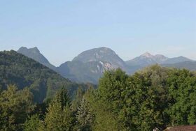 Ruhig, sonnig, herrlicher Bergblick, Garten, beste Ausstattung mit Parkett und überdachten Südbalkon. Großes Wohnzimmer (zusätzl. ausziehb. Doppelcouch), Schlafzimmer (extralange Betten, Sofa, Sekretär), voll eingerichtete Küche (Spülmaschine), Bad (Wanne, Du/WC), WC extra, kleine Diele.