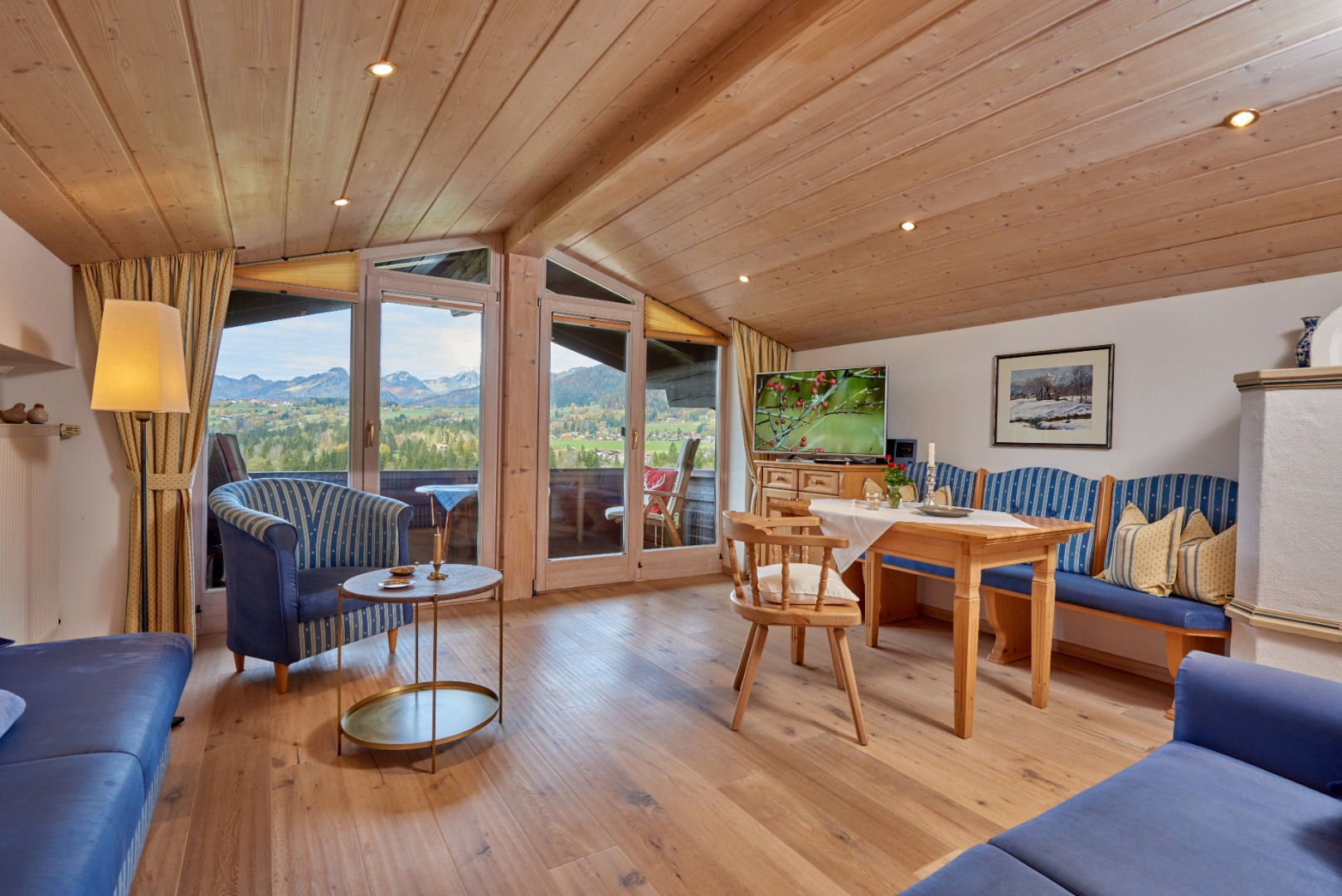 Von der Terrasse aus haben Sie einen freien, unverbauten Blick auf unsere Bergwelt.