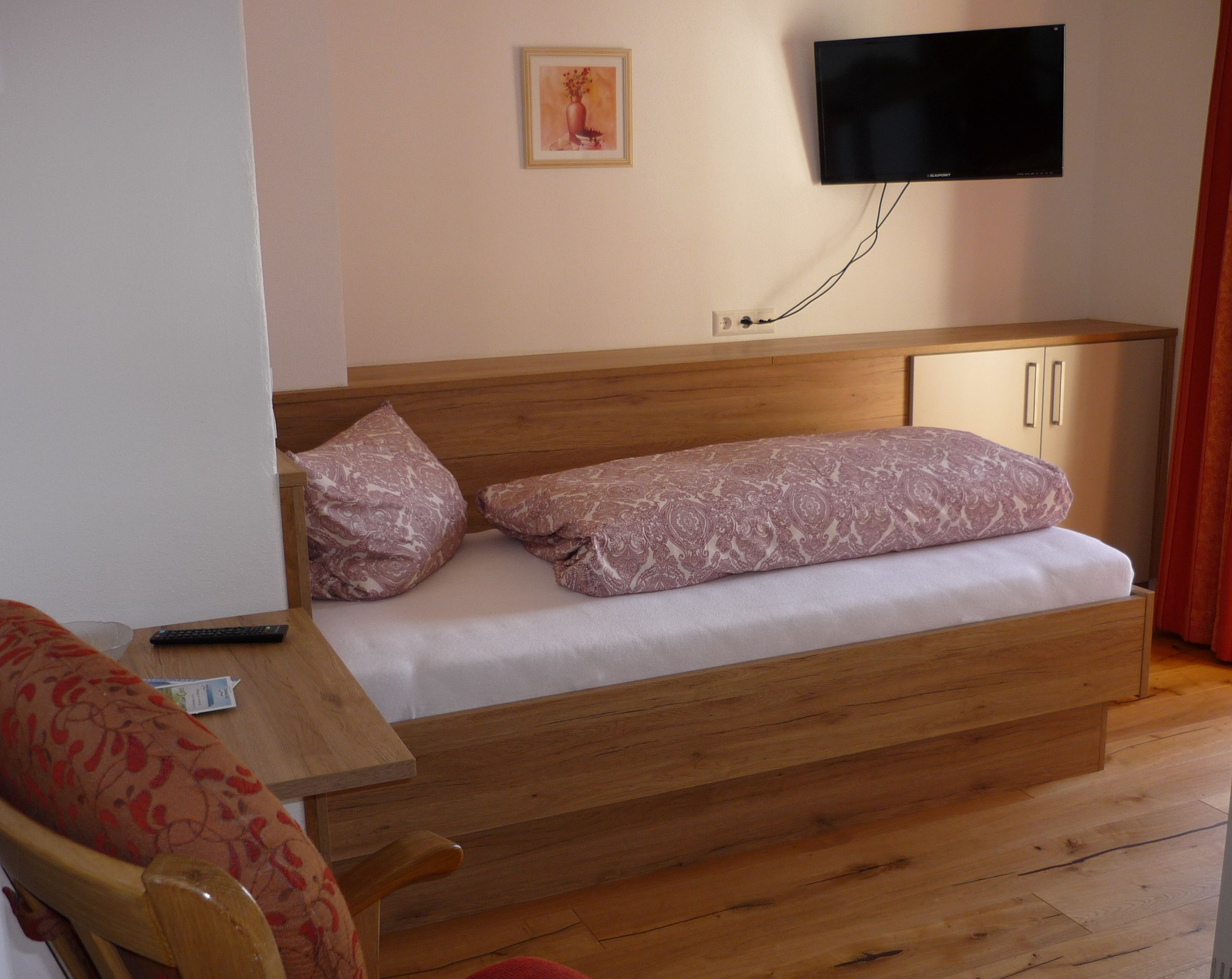 Behagliches Einzelzimmer mit Bergblick sowie Westbalkon.