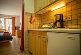Die Einraum-Ferienwohnung (Wohn-/Schlafraum, separate Küche sowie Dusche/WC) hat eine Größe von ca. 23 qm. Gelegen im Erdgeschoss schließt sich eine Terrasse mit Garten in Richtung Westen an die Wohnung an. Hell und freundlich zeigt sich der hübsche Essplatz der Wohnung. Doppel-Bett nur 160x200. Hier ist gute Erholung für zwei Personen möglich!