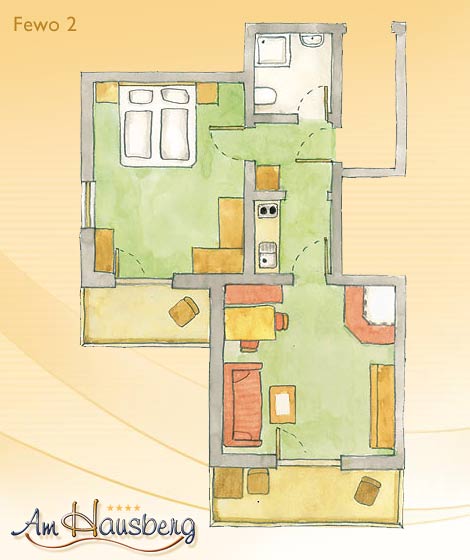 Bei der Einrichtung dieses Komfortappartements haben wir uns große Mühe gegeben, um Ihnen den Aufenthalt so angenehm wie möglich zu machen. Die Nichtraucherwohnung für 2- 4 Personen ist geschmackvoll mit hellen hochwertigen Einbaumöbeln im ländlichen Stil ausgestattet und beinhaltet Selbstwähltelefon, Kabel-TV, Mini-HIFI-Anlage, WLAN-Anschluss sowie eine komplett eingerichtete Küche mit Mikrowellenherd und Spülmaschine. Das Bad verfügt über eine Dusche und WC. Im Wohnraum mit Südbalkon und Gebirgsblick befindet sich neben Essecke und Doppelausziehcouch auch ein Kachelofen mit gemütlicher Ofenbank. Der separate Schlafraum hat ebenfalls einen eigenen Balkon.