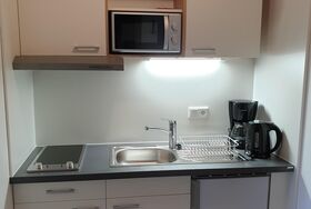 Dieses Appartement hat einen Schlaf-wohn Raum mit einem Doppelbett und einer Schlafcouch(für die dritte Person). Eine Kochnische und eine Sitzecke.Bad mit Dusche und ein WC. Das Appartement hat auch eine Balkon Richtung Nord-Westen. Das App. ist für 2 Erwachsene und 1 Kind