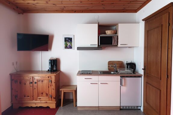Das Appartement hat einen Schlaf-wohn Raum mit Kochnische und Sitzecke ein Doppelbett und ein Stockbett(länge 170cm) Bad mit Dusche und WC. Mit Balkon. Für 2 Erwachsene und 2 Kinder.
