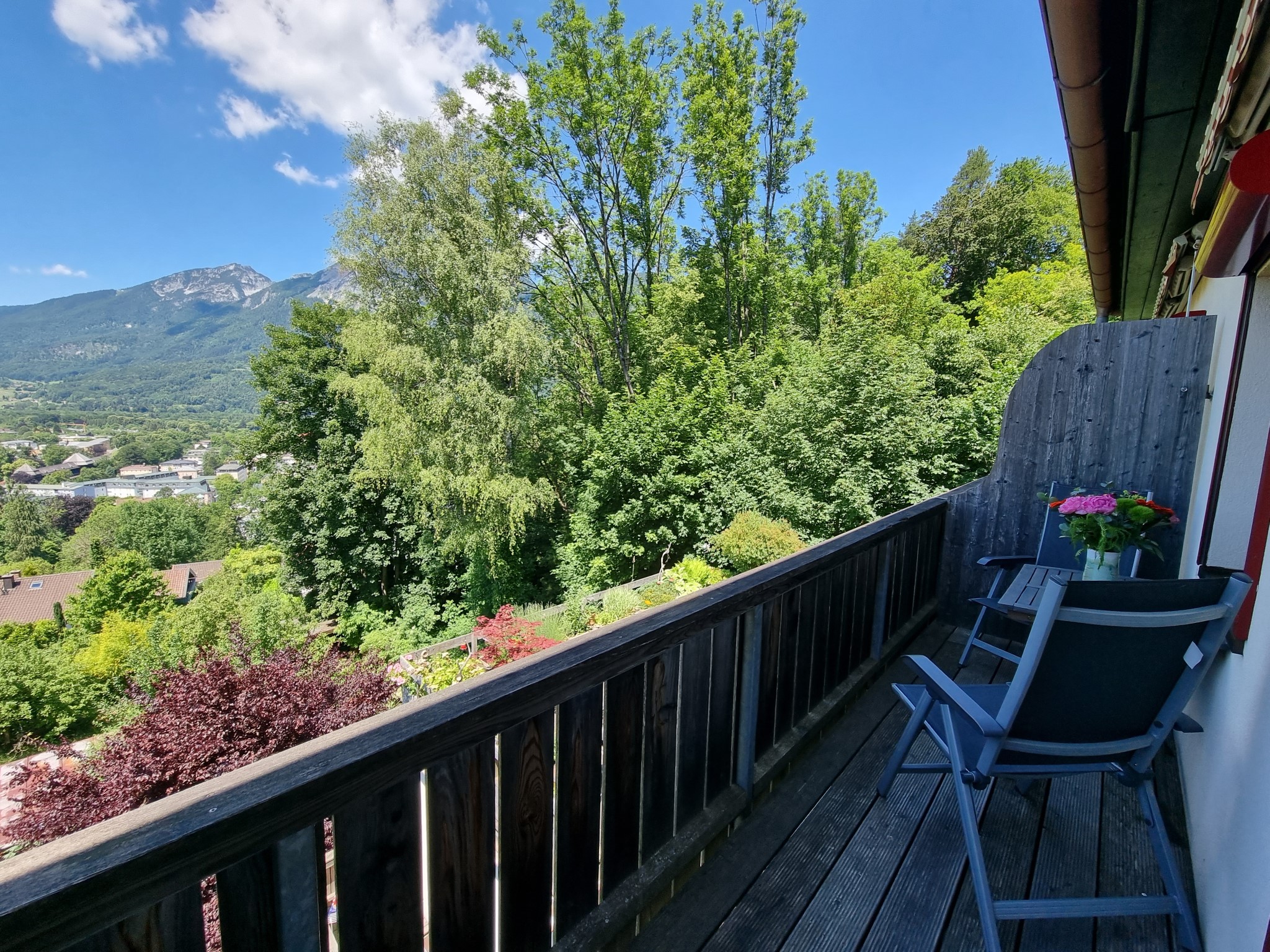 Entdecken Sie unsere gemütliche Ferienwohnung Panorama. Die Wohnung besteht aus einem komfortablen Wohnzimmer mit einem bequemen Schlafsofa und einer seperaten voll ausgestatteten Wohnküche mit einer Spülmaschine. In dem Schlafzimmer mit einem gemütlichen Doppelbett und einem angrenzenden Badezimmer mit Dusche und WC. Ein besonderes Highlight der Wohnung ist der umlaufende Balkon, der Ihnen einen atemberaubenden Blick auf Bad Reichenhall und die umliegenden Berge bietet. Hier können Sie Ihre Mahlzeiten im Freien genießen und einfach die herrliche Aussicht auf sich wirken lassen.