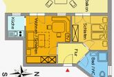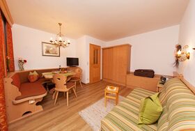 Diese Zwei-Raum-Wohnung mit 42 m² bietet Platz für 1-2 Personen. Der Wohnraum kann als getrenntes Schlafzimmer (Federkernsofa) genutzt werden. Die gemütliche Sitzecke lädt zum verweilen ein. Das separate Schlafzimmer ist mit einem Doppelbett eingerichtet. In der separaten Küche mit Mikrowelle können schmackhafte Mahlzeiten zubereitet werden. Der große Westbalkon bietet einen freien Blick in die wunderschöne Bergwelt. Die Ausstattung wird komplettiert mit Dusche/WC, Kabel-TV und kostenlosem Internet. Einen Grundriss der Wohnung finden Sie auf unserer Homepage.
