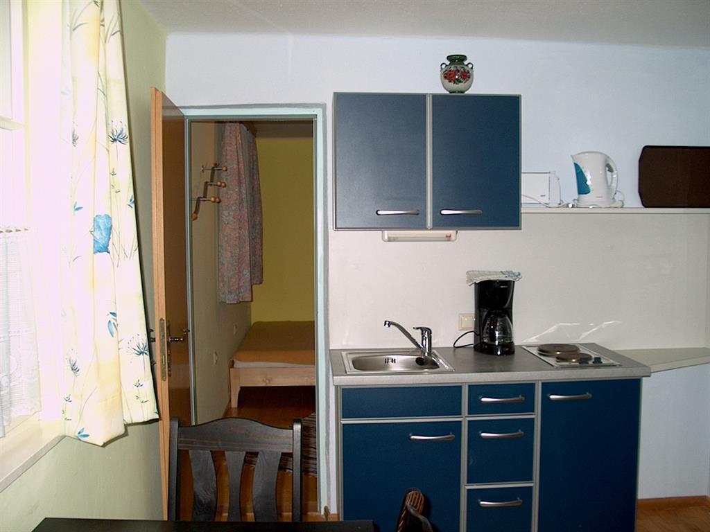 Appartement Dirndl ca 30 m², sehr gemütliche kleine Wohnung für 2 bis 3 Personen, 1 Schlafzimmer, Wohnküche mit 2-Plattenherd, kleiner Backofen, Kabel-TV, Internetanschluß, WiFi/WLan, Kühlschrank, Kaffeemaschine und Wasserkocher.