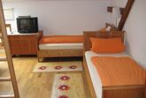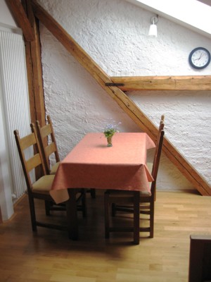 Ferienwohnung Oberdirn im Obergeschoss mit 6 Betten. Zwei getrennte Schlafräume, ein Doppelzimmer sowie ein weiteres Zimmer mit Doppelbett und Etagenbett. Großzügige, sonnige Wohnküche mit Waldblick. Bad mit DU/WC .