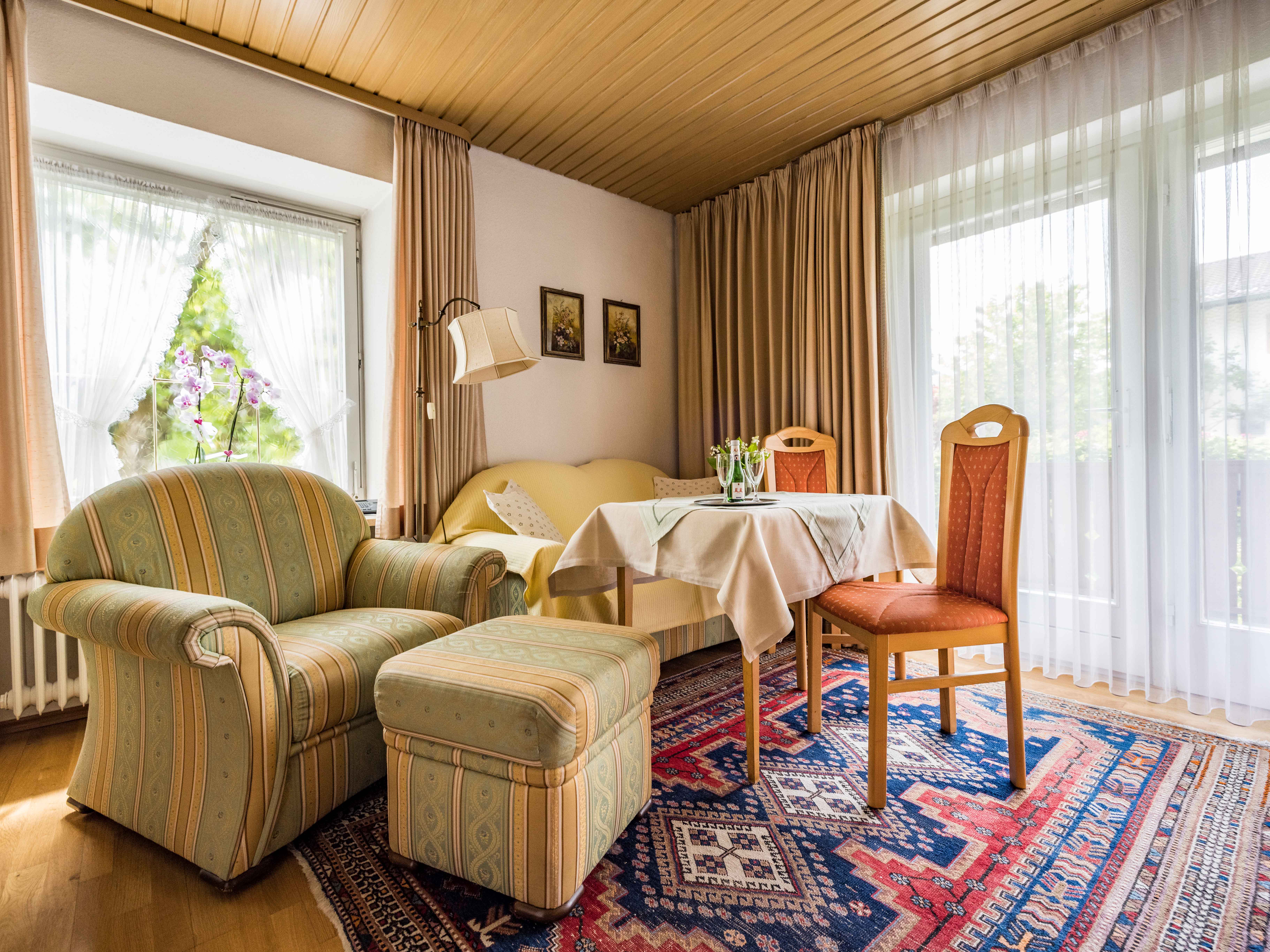 Unser gemütliches, neu eingerichtetes Appartement in der Alpenstadt verfügt über einen kombinierten Wohn- und Schlafraum, ein Doppelbett, eine kleine, gut ausgestattete Küchenzeile und eine Terrasse mit herrlichem Bergblick. Dort lassen sich entspannte Stunden verbringen. Frühstück ist im Haus möglich.
