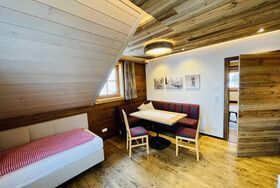 Die zwei Almappartements sind im Obergeschoss unserer Seminarhütte. Ausstattung: ca. 45 m² groß, Wohnzimmer mit Doppelschafcouch, Schlafzimmer, Dusche/WC, Küchenblock, Panoramabalkon und Sat-TV.