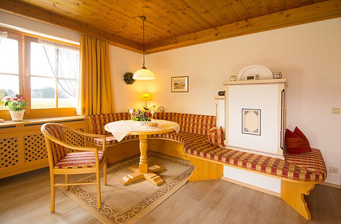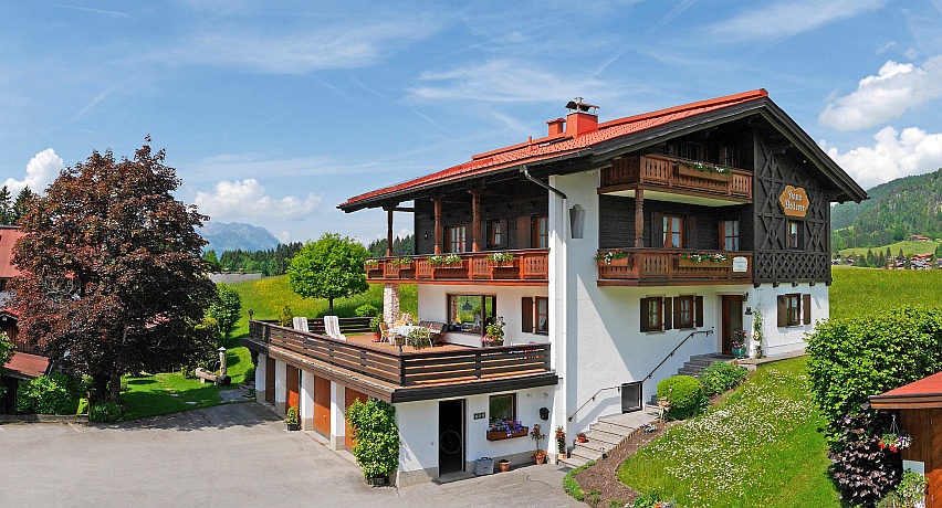 Unser persönlich geführtes Ferienhaus ist etwa fünf Gehminuten vom Ortszentrum entfernt und beeindruckt mit herrlichem freien Blick über weite Wiesen auf das Kaisergebirge. In ruhiger sonniger Lage zwischen den Bayrischen und Tiroler Alpen bietet es dem Gast alle Annehmlichkeiten, die er sich für die schönsten Wochen des Jahres wünscht. Wenn Sie eine Ferienwohnung in Reit im Winkl im Chiemgau mit gemütlicher, heimeliger Atmosphäre suchen und einen herrlichen Bergblick zu schätzen wissen, werden Sie sich in unserem gepflegten Gästehaus wohl fühlen. Wärmen Sie sich zudem am wohligen Kachelofen in Ihrer Zweiraumwohnung und genießen Sie das traumhafte Bergpanorama. In unserer kleinen Wellness Oase können Sie nach einem anstrengenden Tag in der Physiotherm Infrarotkabine mit Farblicht, Aroma- und Klangbad gesund entspannen. Bademäntel werden auf Wunsch kostenlos zur Verfügung gestellt. Die Gastgeberin ist ausgebildete Kräuterpädagogin, sowie Natur- und Landschaftsführerin und nimmt Sie gerne auf eine ihrer spannenden und lehrreichen Kräuterwanderungen in und um Reit im Winkl mit. Wir leben und lieben die Natur mir ihrer Vielfalt, das heimische Brauchtum, die bayrische Tradition mit ihrer Musik und ihrem Gesang - einfach bayrisch gmiatlich.