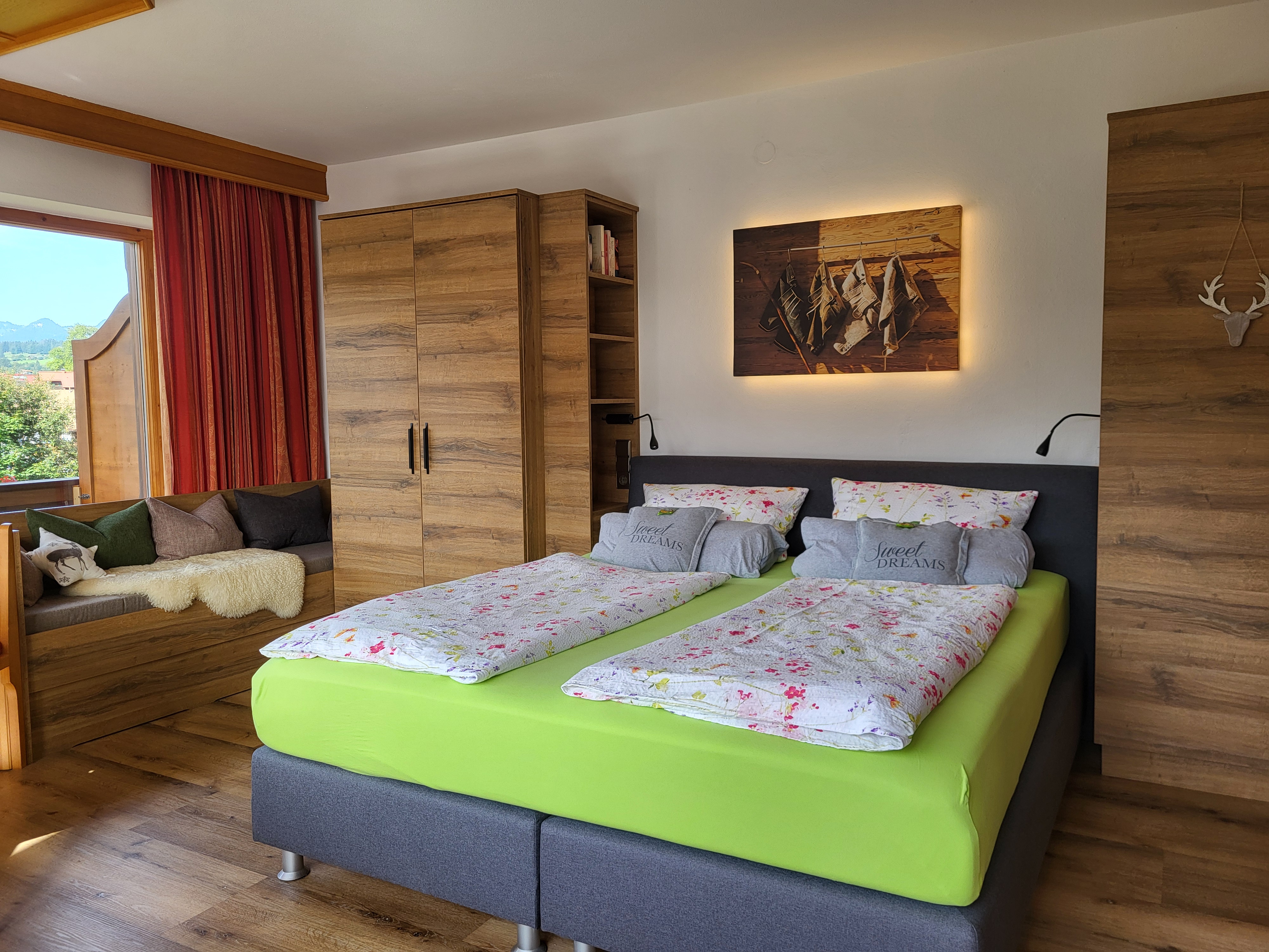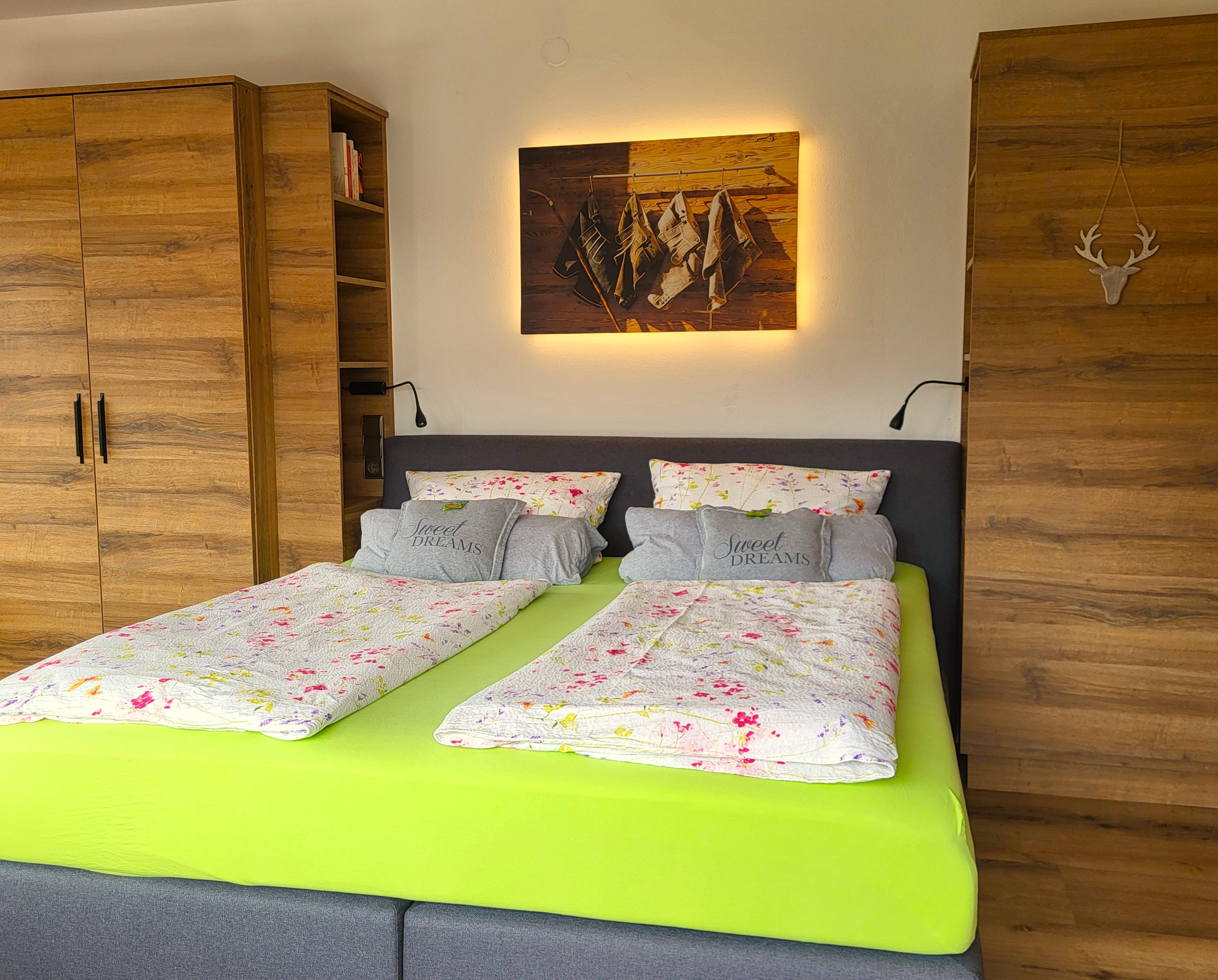 Unsere sieben Ferienwohnungen (für 2-5 Personen), davon Nr. 1,6,7,8 mit einer **** und *****Sternen Klassifizierung und die drei Doppelzimmer sind teilweise alpenländisch, aber auch modern mit viel Liebe zum Detail gestaltet und werden ständig renoviert. Viele Schnitzarbeiten, Möbel und Holzdetails fallen auf - Sie werden vom Hausherrn individuell gefertigt - darum steckt auch viel Herzblut in der Einrichtung.