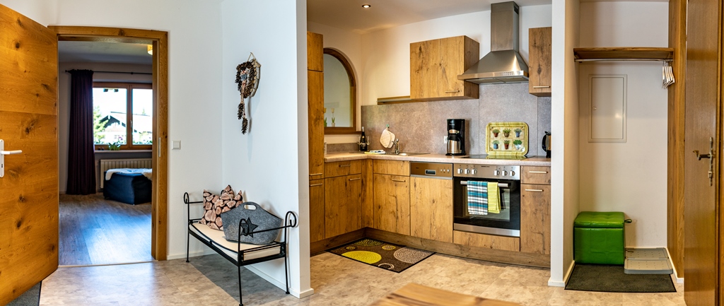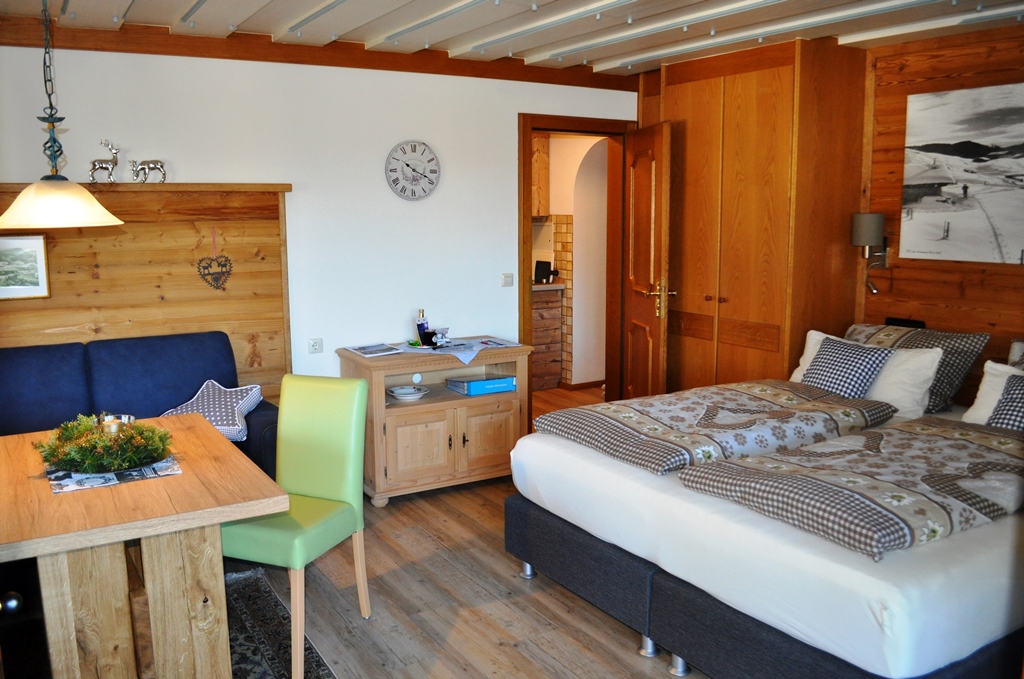 Unsere sieben Ferienwohnungen (für 2-5 Personen), davon Nr. 1,6,7,8 mit einer **** und *****Sternen Klassifizierung und die drei Doppelzimmer sind teilweise alpenländisch, aber auch modern mit viel Liebe zum Detail gestaltet und werden ständig renoviert. Viele Schnitzarbeiten, Möbel und Holzdetails fallen auf - Sie werden vom Hausherrn individuell gefertigt - darum steckt auch viel Herzblut in der Einrichtung.