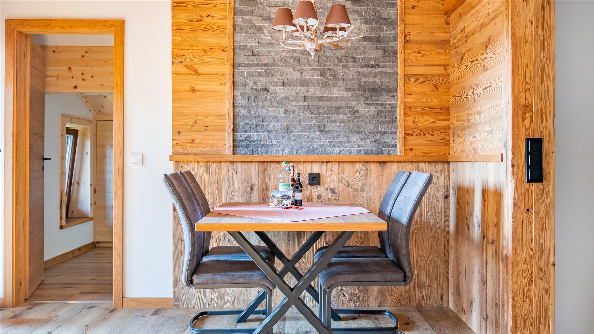 Unsere sieben Ferienwohnungen (für 2-5 Personen), davon Nr. 1,6,7,8 mit einer **** und *****Sternen Klassifizierung und die drei Doppelzimmer sind teilweise alpenländisch, aber auch modern mit viel Liebe zum Detail gestaltet und werden ständig renoviert. Viele Schnitzarbeiten, Möbel und Holzdetails fallen auf - Sie werden vom Hausherrn individuell gefertigt - darum steckt auch viel Herzblut in der Einrichtung.