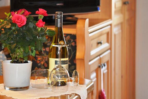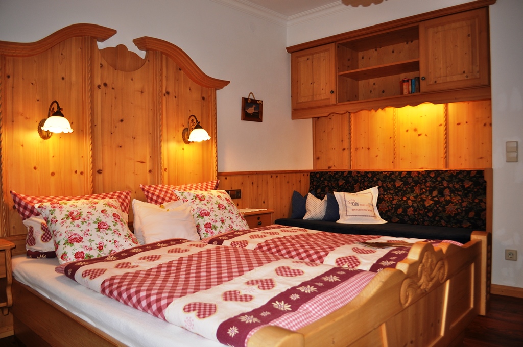 Unsere sieben Ferienwohnungen (für 2-5 Personen), davon Nr. 1,6,7,8 mit einer **** und *****Sternen Klassifizierung und die drei Doppelzimmer sind teilweise alpenländisch, aber auch modern mit viel Liebe zum Detail gestaltet und werden ständig renoviert. Viele Schnitzarbeiten, Möbel und Holzdetails fallen auf - Sie werden vom Hausherrn individuell gefertigt - darum steckt auch viel Herzblut in der Einrichtung.