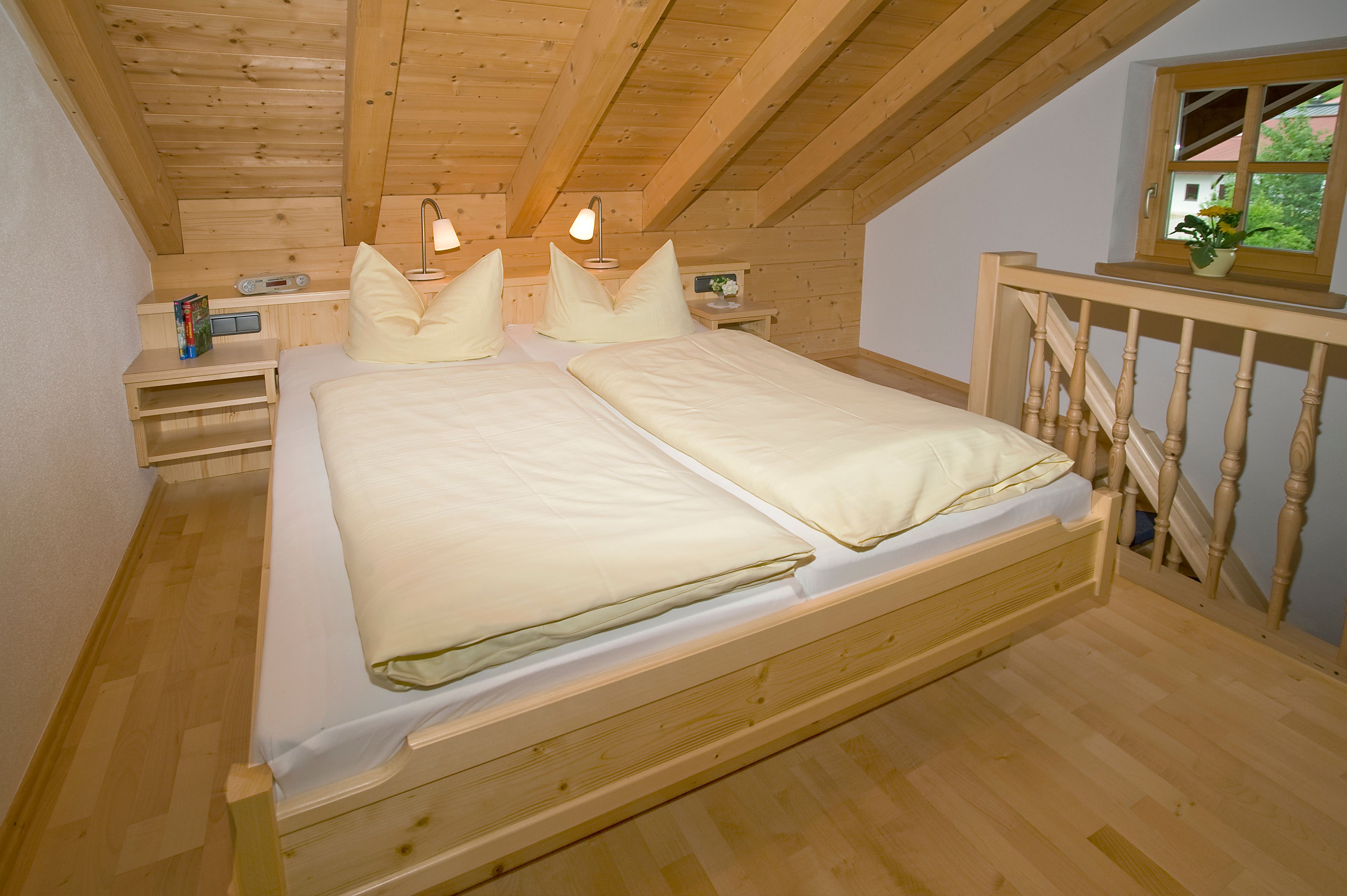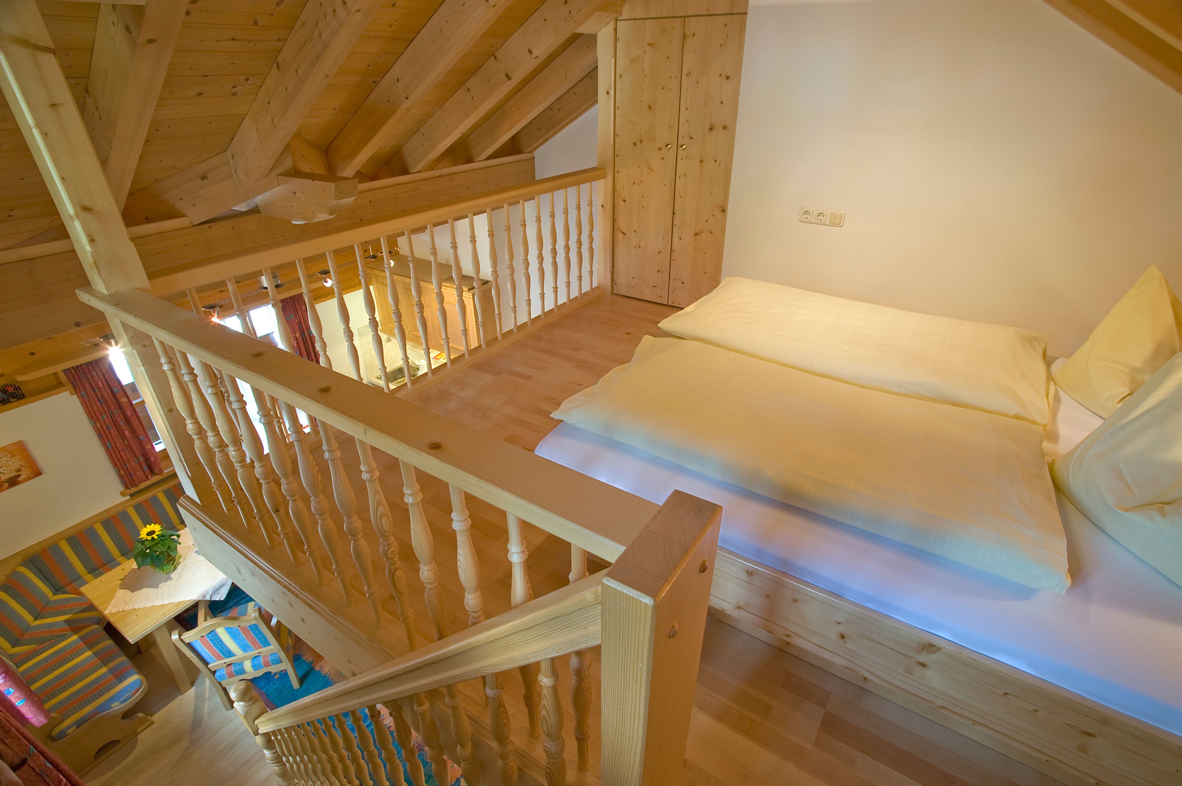 Auf der kuschligen Galerie befindet sich das Dachstübchen mit einer Schlafgelegenheit.