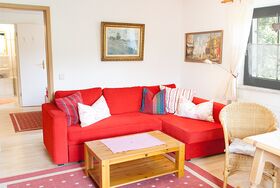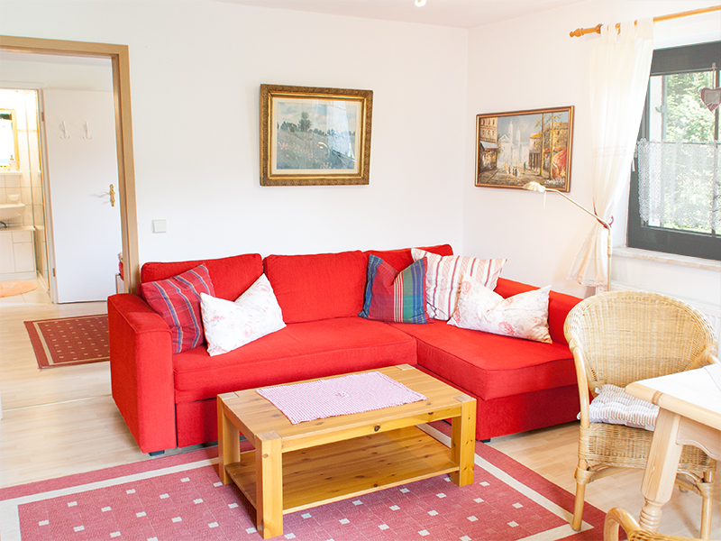 gemütliche Wohnung im modernen Landhausstil mit Süd- Balkon, Küchenzeile mit Geschirrspüler/ Mikrowelle, großzügiges modernes Bad / WC, Kabel-TV.