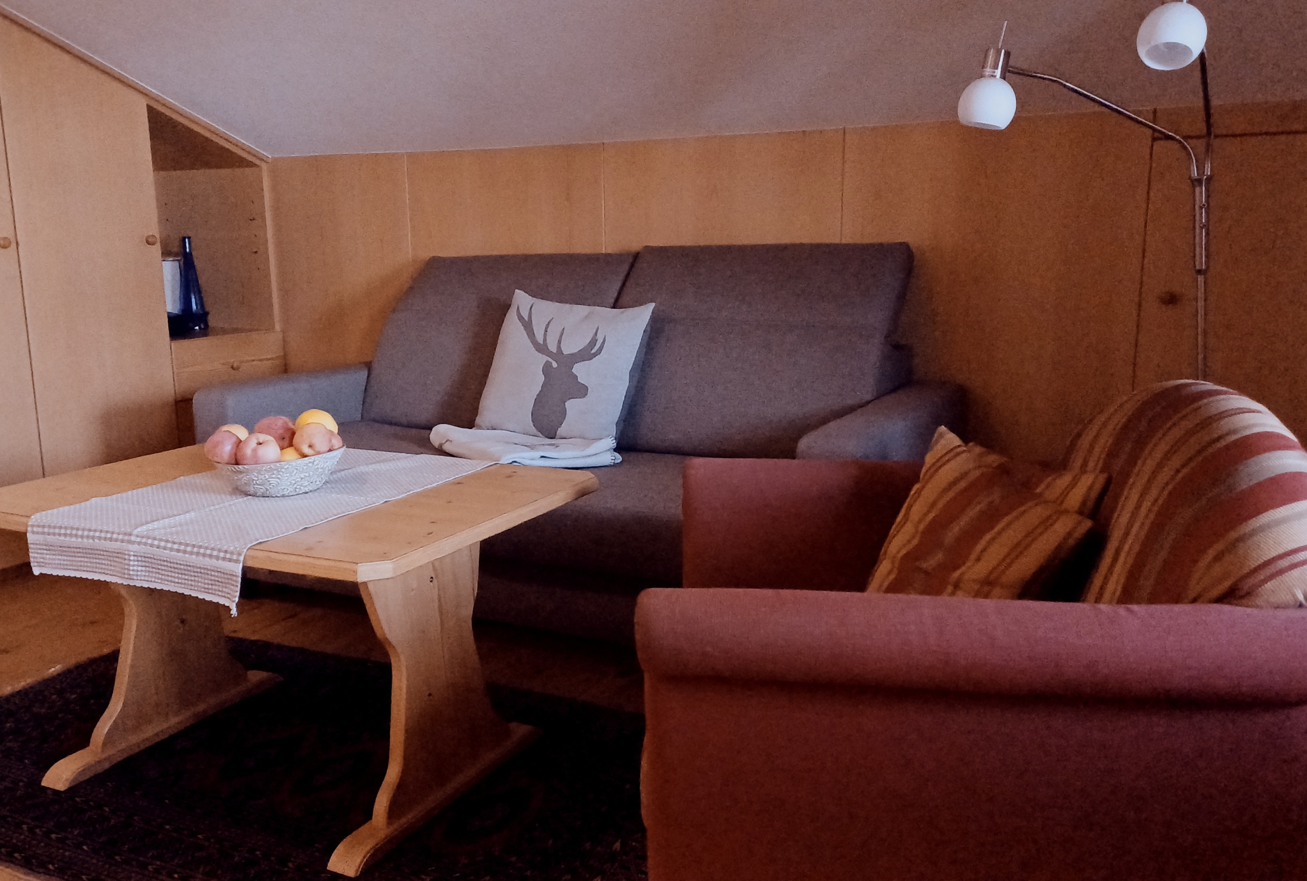 Schlafzimmer, Doppelbett und Doppel-Couch / Wohnzimmer, großer Esstisch, separate Küche, Bad mit Dusche und Wanne extra, 2 Balkone mit Traumausblick in die Berge. Haustiere sind auf Anfrage erlaubt.