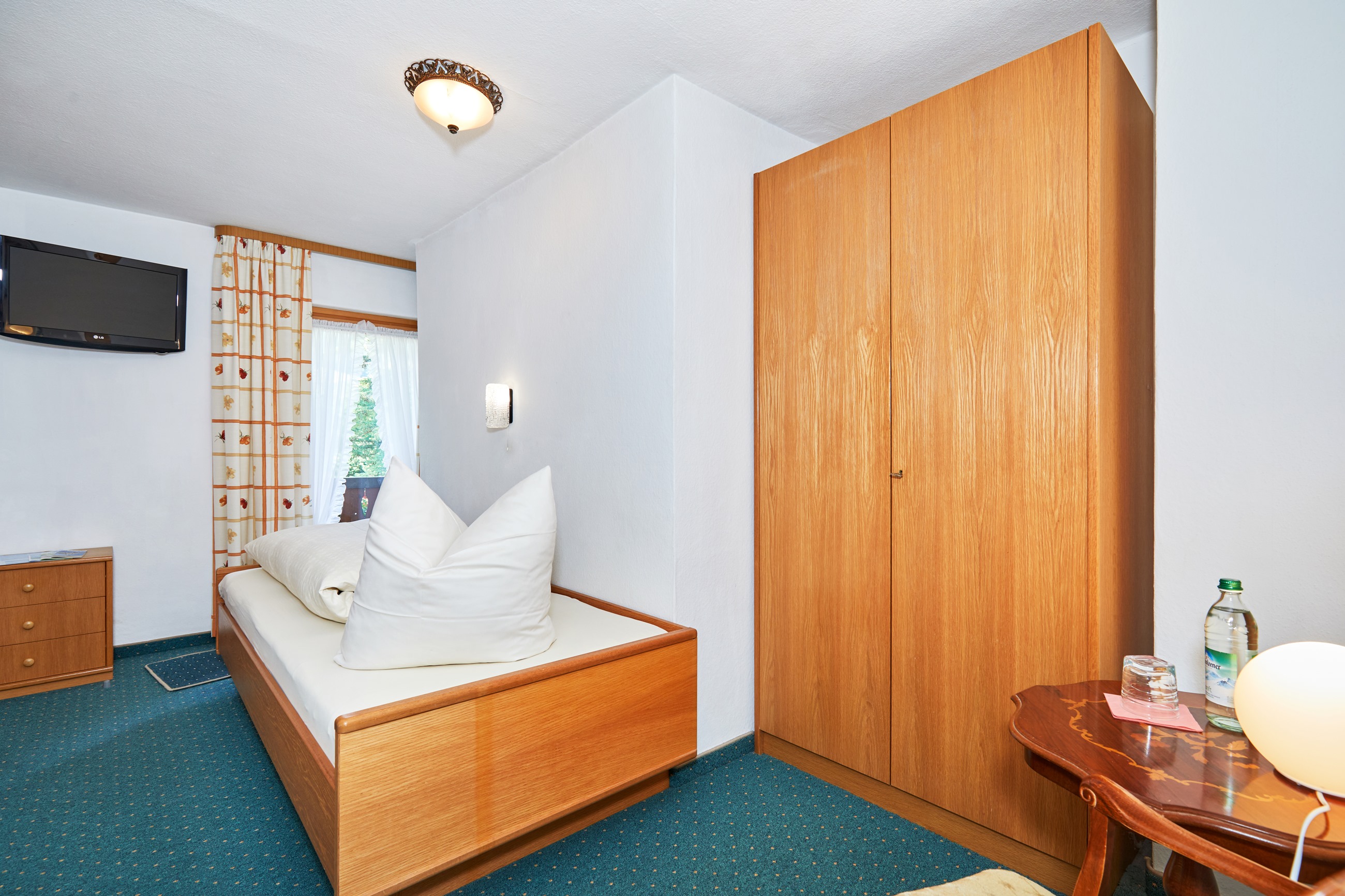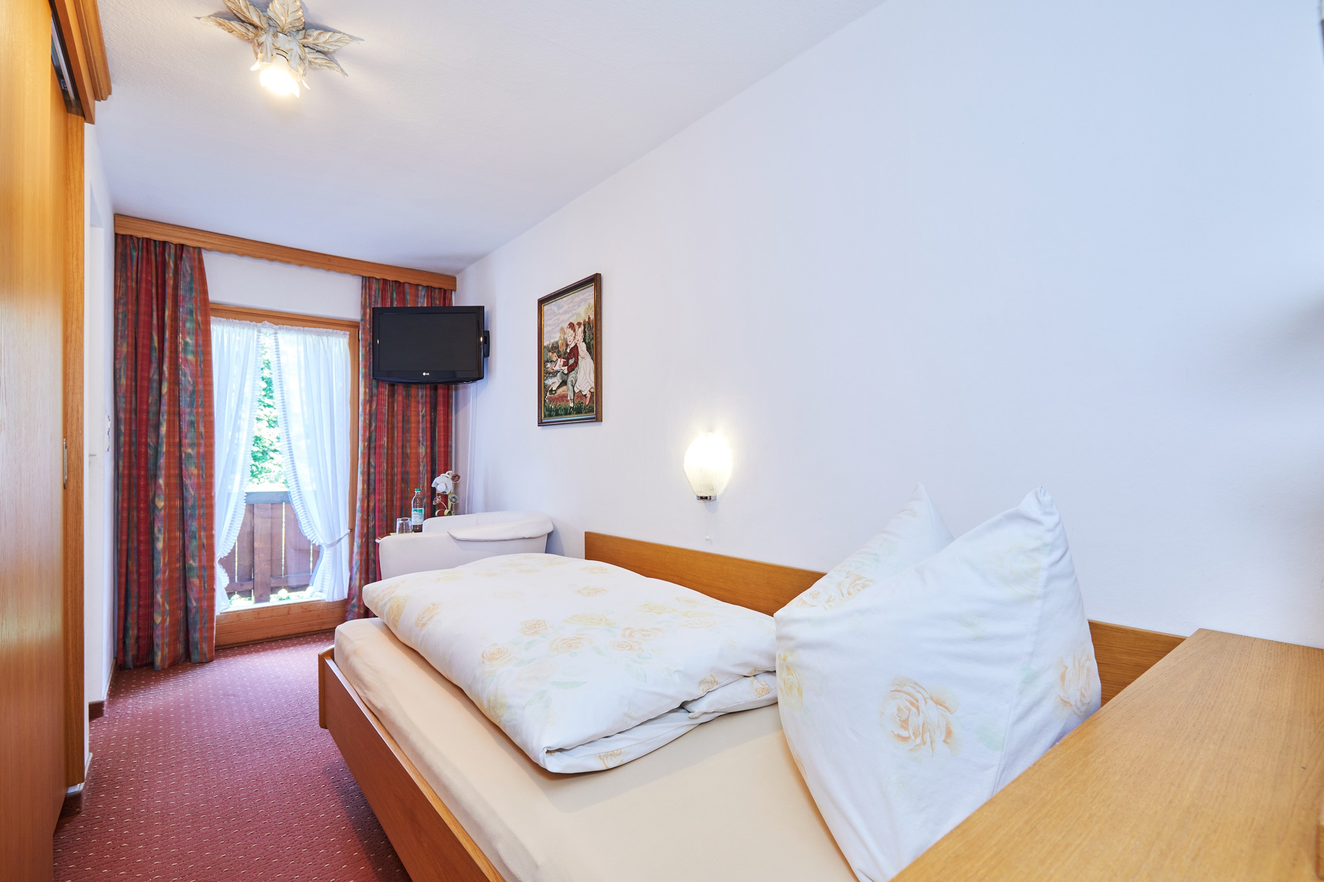 Sie haben über den Kurpark hinweg einen idyllischen Ausblick zum Hausberg, das Frei- und Hallenbad ist in wenigen Gehminuten erreichbach. Auch einen Balkon können sie genießen.