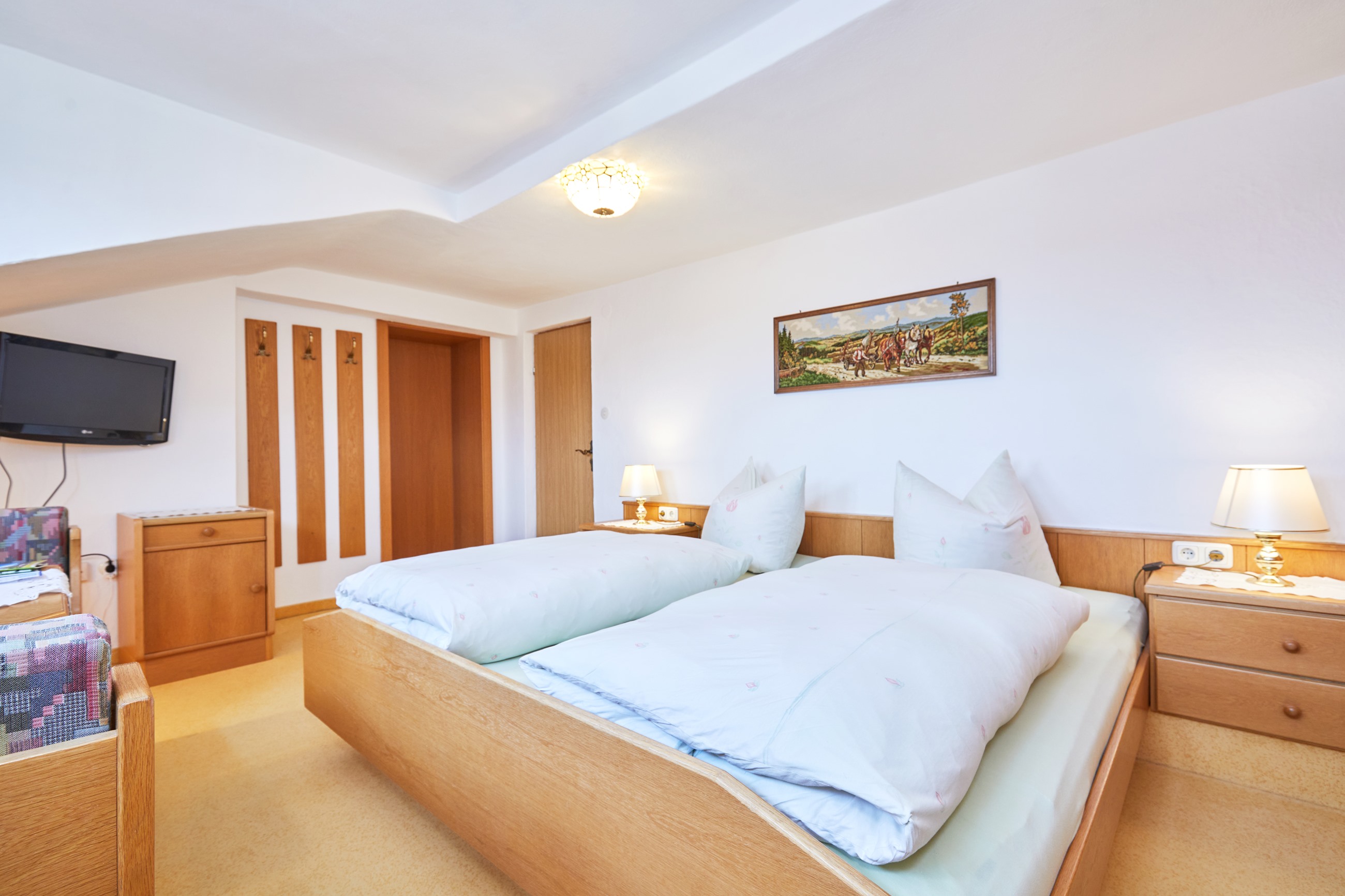 Ruhiges, zentral gelegenes Haus am Kurpark. Gut ausgestattete Zimmer, gemütlicher Aufenthaltsraum und Sonnenterrasse mit Liegewiese, Garagen u. Parkplätze. Freibad in unmittelbarer Nähe. Abends sitzen wir in gemütlicher Runde beisammen und einmal wöchentlich gehen wir mit unseren Gästen zum Wandern.