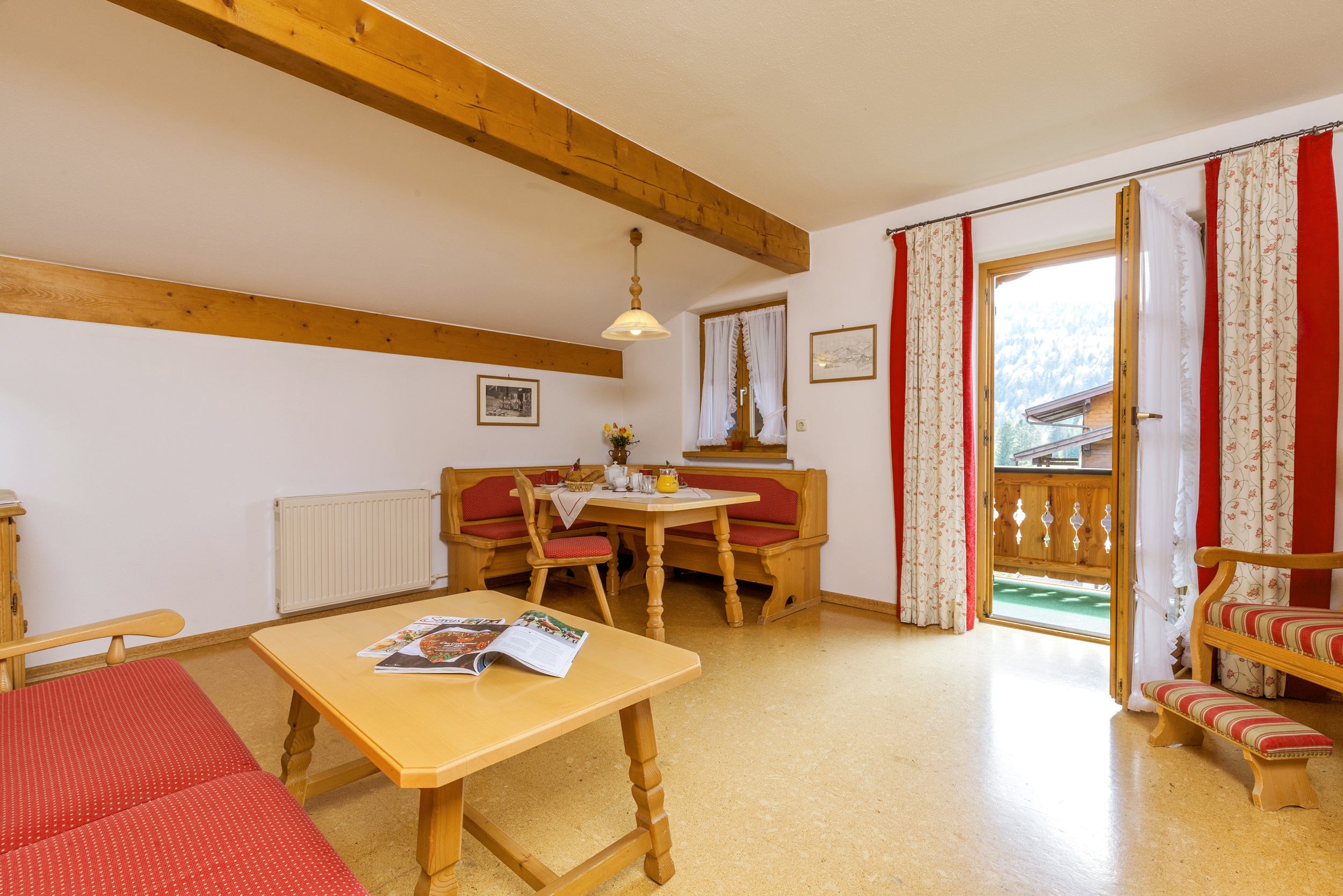 Gemütliche 2-Raum-Wohnung mit Südbalkon im 2. Stock. Wunderbarer Blick auf die umliegenden Berge und Wiesen. Küche komplett eingerichtet und zusätzlicher Schlafmöglichkeit auf der Ausziehcouch im Wohnzimmer.
