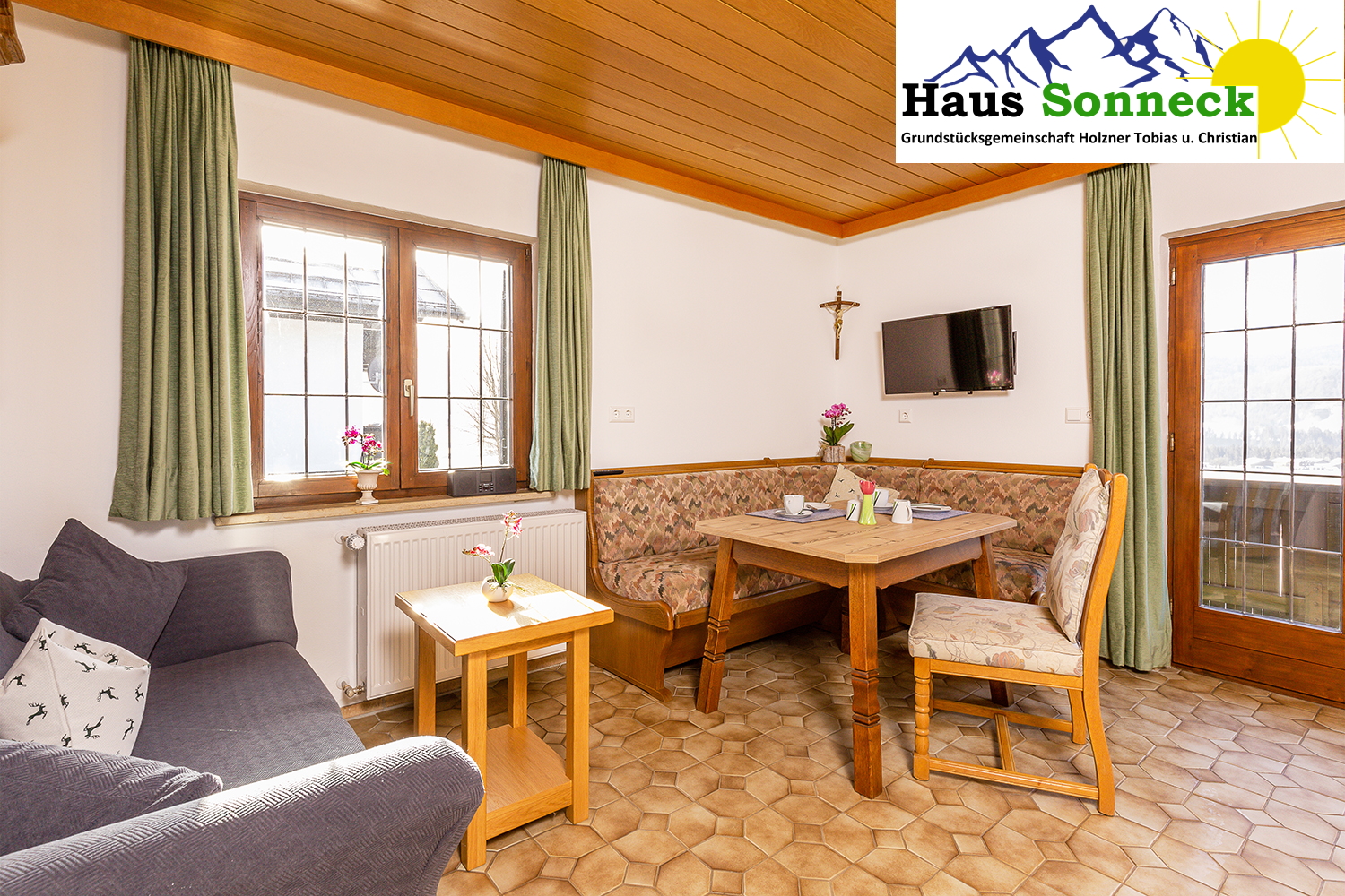 Unsere Ferienwohnungen für 2 Personen liegen an einem Südhang über Reit im Winkl mit beeindruckendem Bergpanorama und Ausblick über das gesamte Dorf.
