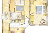 Ideale Familien-Dreiraum-Wohnung für 2-4 Personen (ca. 50 qm), zwei Balkone, neu renoviertes kleines Wohn/Esszimmer mit neuer Küchenzeile (Spülmaschine), 2 Schlafzimmer* mit Doppelbetten in Komforthöhe, Dusche/WC (Fön), zwei Flachbild-TV, CD/Radio und Safe. Die Ferienwohnung kann auf Wunsch auch als 2-Raum-Wohnung gemietet werden (ca. 40 qm).