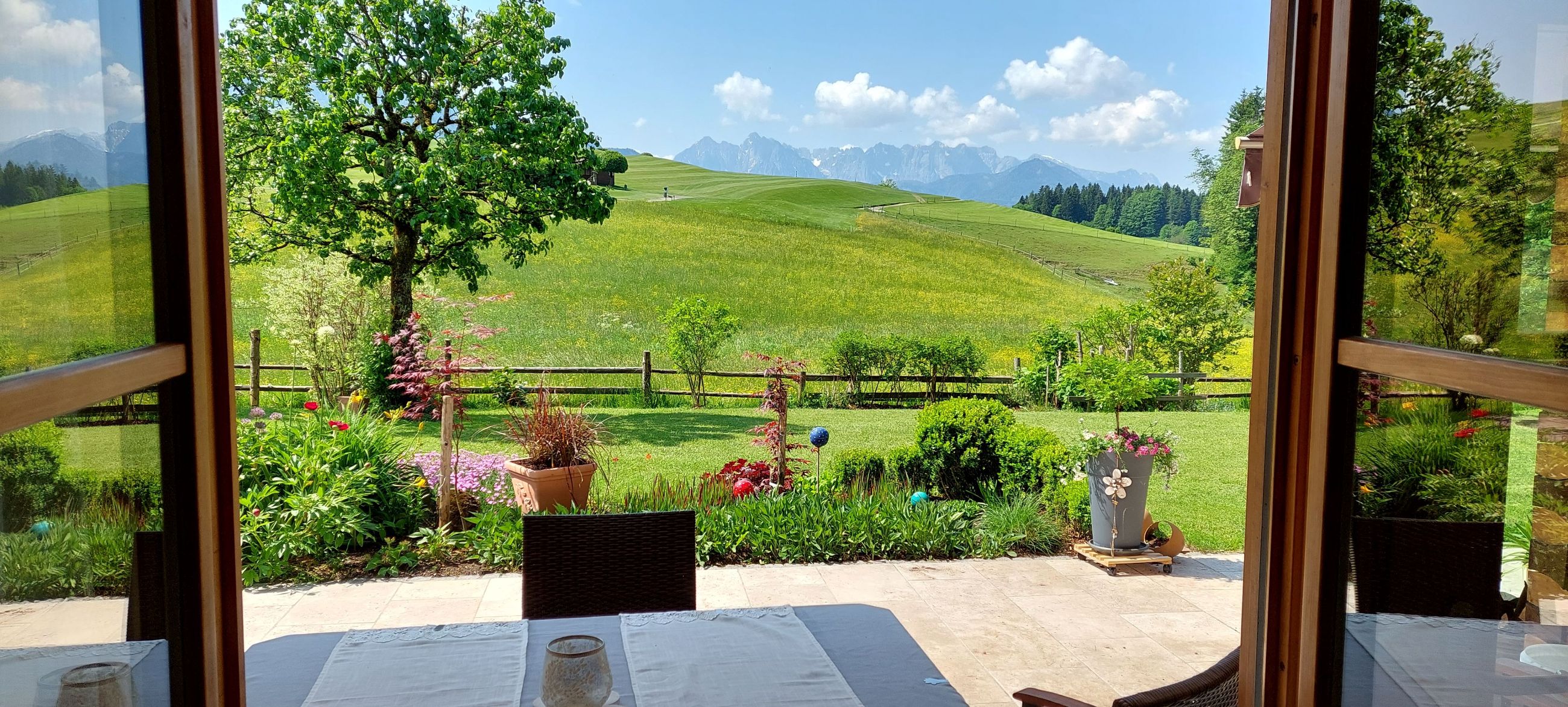 Geräumiges 60 qm Appartement mit großer Terrasse und separatem Schlafraum - neues Boxspringbett. Gemütliches Esszimmer, große Küchenzeile mit Spülmaschine und Vollausstattung. Ausziehbare neue Federkern-Couch im Wohnzimmer vorhanden. Genießen Sie hier den Panoramablick auf den Wilden Kaiser. Im Frühjahr 2025 ist diese Ferienwohnung komplett saniert worden - alles neu - Ausblick bleibt gleich ;)
